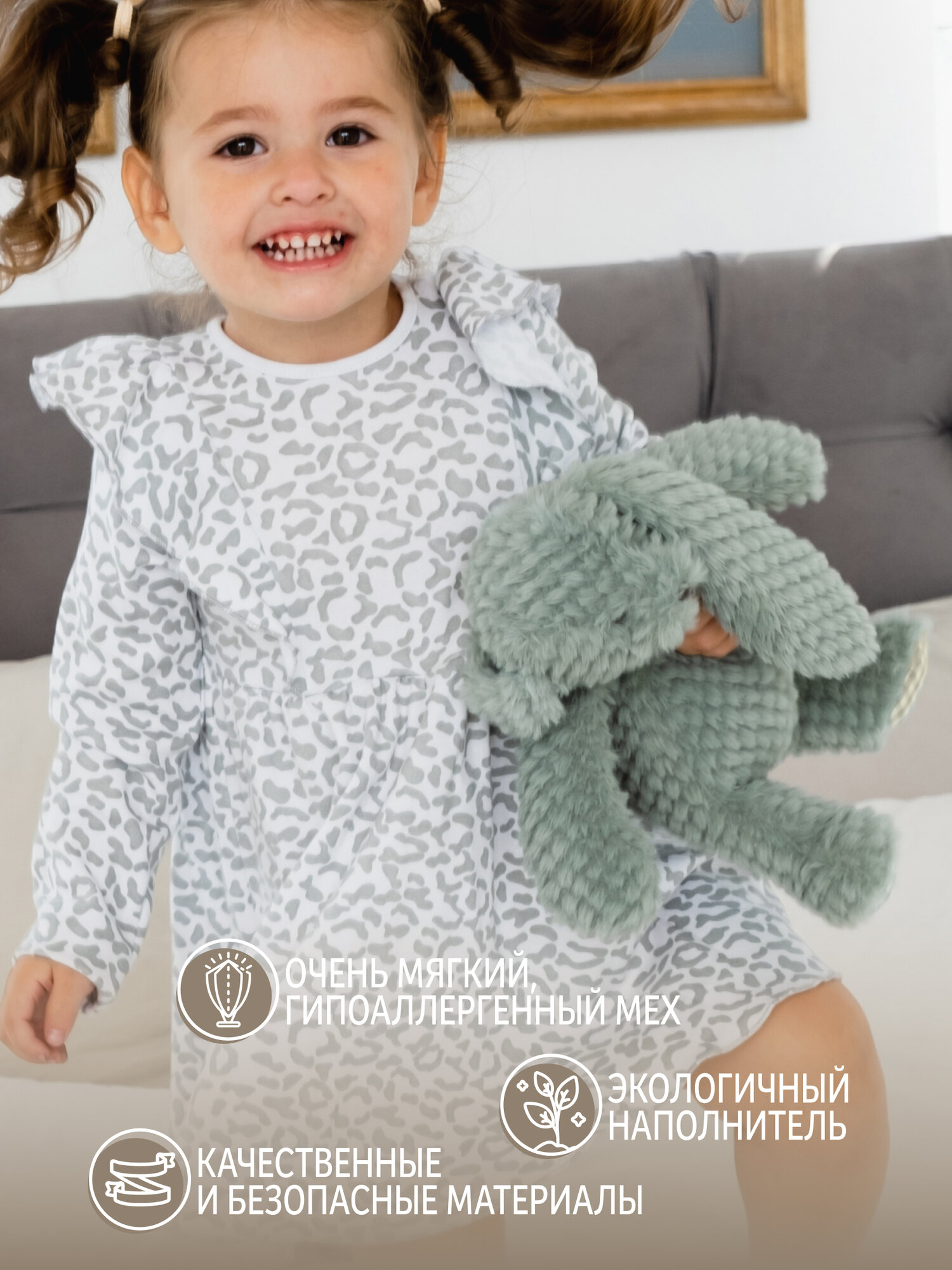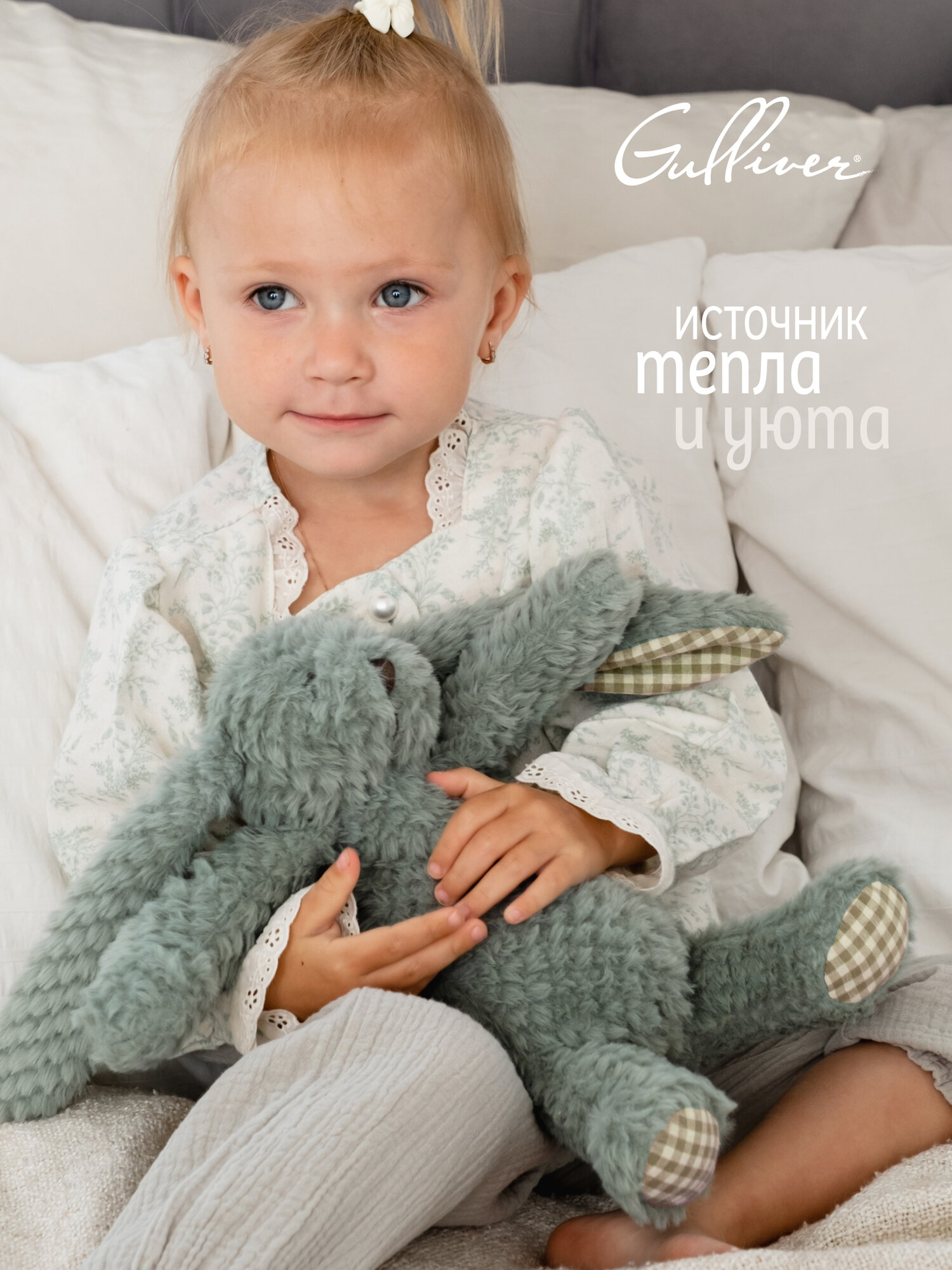Мягкая игрушка зайка из коллекции Classic от Gulliver — это идеальный спутник для Вашего ребенка. Этот милый зайчик с длинными ушами станет верным другом и надежным помощником в мире снов. Изготовленный из нежного светло-бирюзового плюша, зайчик обладает коричневым носиком и текстильными вставками на лапках и внутри ушек, что делает его еще более привлекательным и уютным. Необычный фактурный мех придает уникальность и делает ее приятной на ощупь, что особенно важно для малышей.