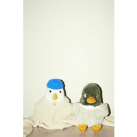 Мягкая игрушка-утка из мягкого флиса с мягким клювом, подвижными лапками, пушистыми крыльями и вышитыми чертами лица. Ширина 13 см. Глубина 18 см. Высота 21 см