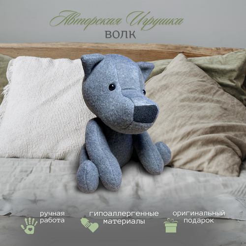 Мягкая игрушка Волк - это изделие ручной работы, бережно изготовленое из ткани серого цвета, приятной на ощупь. Элементы вышивки, бусины, в качестве глаз - бережная ручная работа. Крепкие и ровные швы тщательно проработаны. Внутри игрушки серого волка гипоаллергенный наполнитель, который является безопасным для здоровья человека. Игрушка волк впишется создаст уют в доме - это декоративная игрушка в гостиную, детскую, а также в любую другую комнату. Наше изделие станет отличным вариантом подарка взрослым и детям: будет очень кстати в качестве мягкой игрушки для сладких новогодних подарков, а также как интерьерная игрушка в дом. Мягкая игрушка для девочки отлично впишется в детскую комнату в качестве декора на полку, на дивал или в качестве украшения на праздник, такой как выписка, День Рождения или Новый год. Плюшевая игрушка волк приятна на ощупь, имеет не только красивый вид, но также качественный пошив и наполнитель, который будет держать форму изделия на протяжении долгого времени. Порадуйте себя и своих близких авторской игрушкой ручной работы! Мягкая игрушка подарочная - идеальный вариант подарка: на День Рождения, подарок на 8 марта. на 14 февраля день влюбленных, женщине на восьмое марта, Новый год, в роддом, на рождение ребенка, новоселье и др.