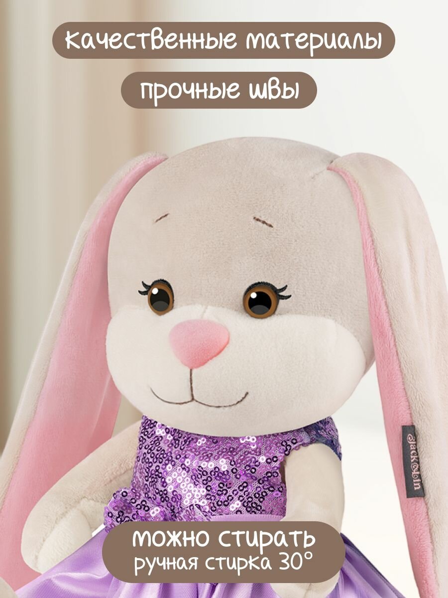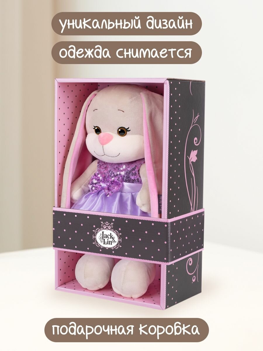 Купить Мягкая игрушка Jack&Lin Зайка Лин в сиреневом платье с пайетками, 25 см, в коробке с доставкой по всей России.