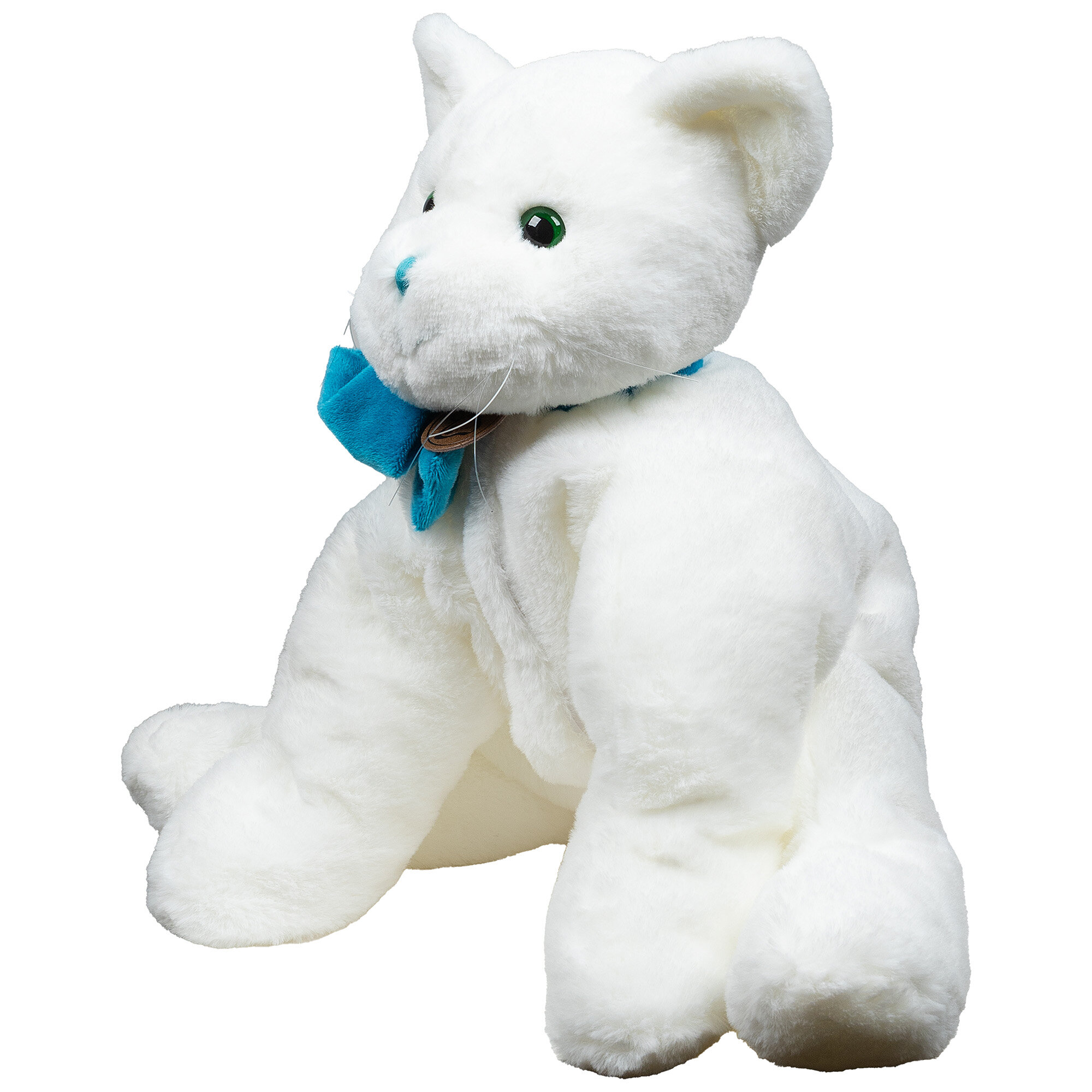 Мягкая игрушка Кот 45 см (белый/бирюзовый бант) (AT365135)