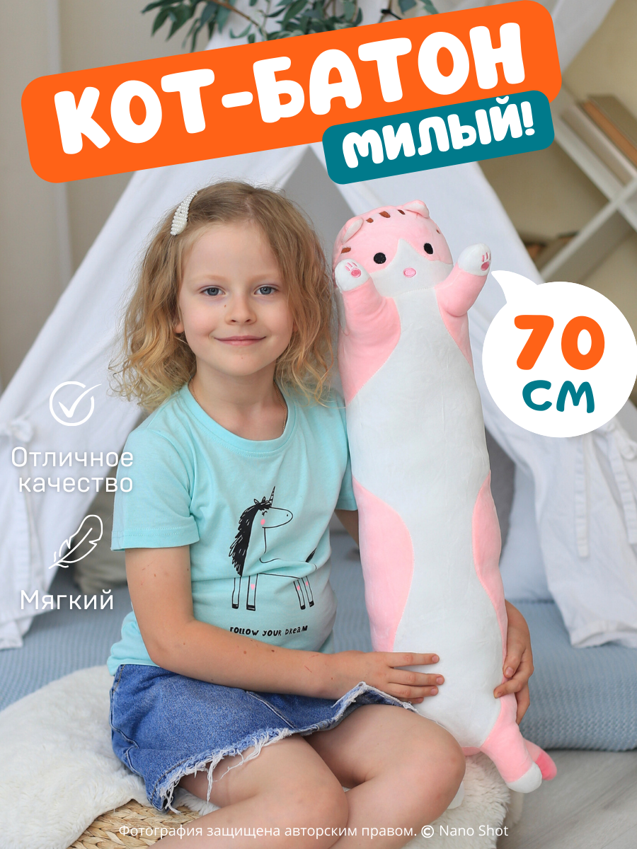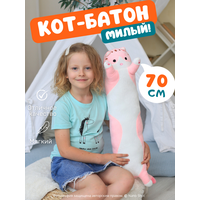 Ищете подарок для малыша, ребенка, подростка, взрослого или любимого человека? Мягкая игрушка Кот-батон, 70 см розового цвета - отличный выбор! Этот милый котик станет верным другом на протяжении многих лет. Он развивает у детей чувство уюта и безопасности, а также помогает развивать моторику и воображение.