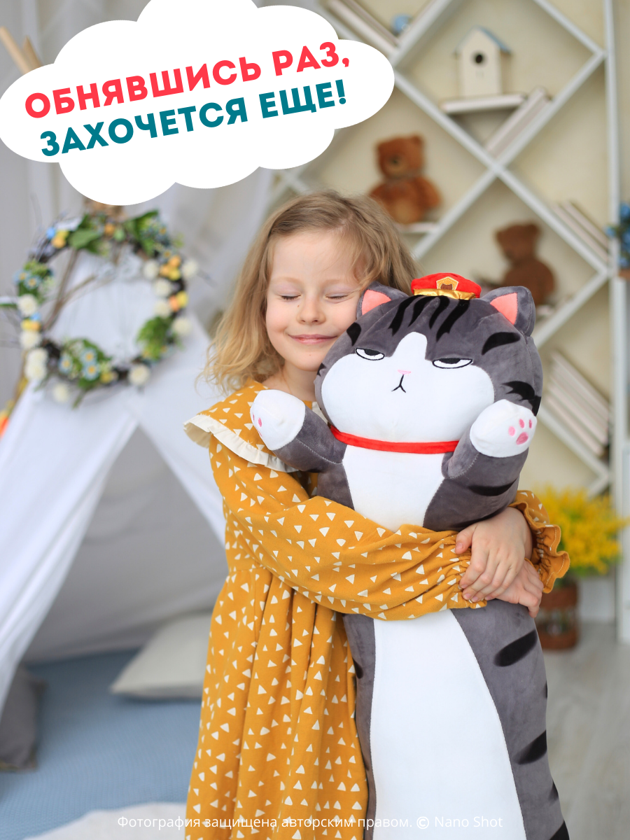 Его можно использовать как подушку, мягкую детскую игрушку и даже как подушку для беременных. Игрушка-подушка может служить не только для сна и игры, но и для украшения интерьера. Дети будут в восторге от такого кота-багета, ведь она изготовлена из качественного материала - мягкого велюра и гипоаллергенного холлофайбера.