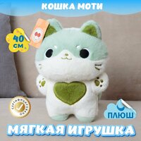 Мягкая игрушка Кот для девочек и мальчиков / Плюшевая Кошка для детей KiDWoW зеленый 40см
