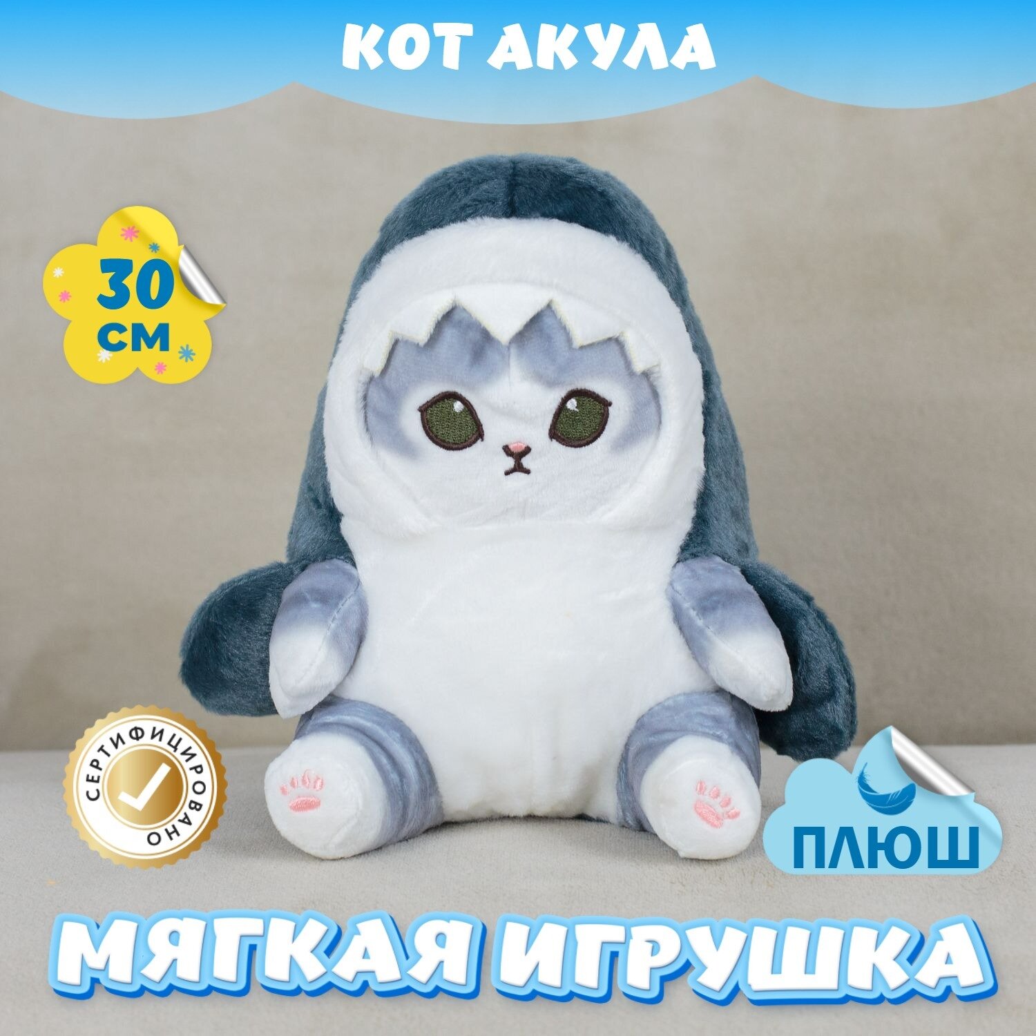 Мягкая игрушка Кот для малышей / Плюшевый Котик для сна KiDWoW Серый 30см: сравнение цен, характеристики, фото, актуальное наличие и цены.