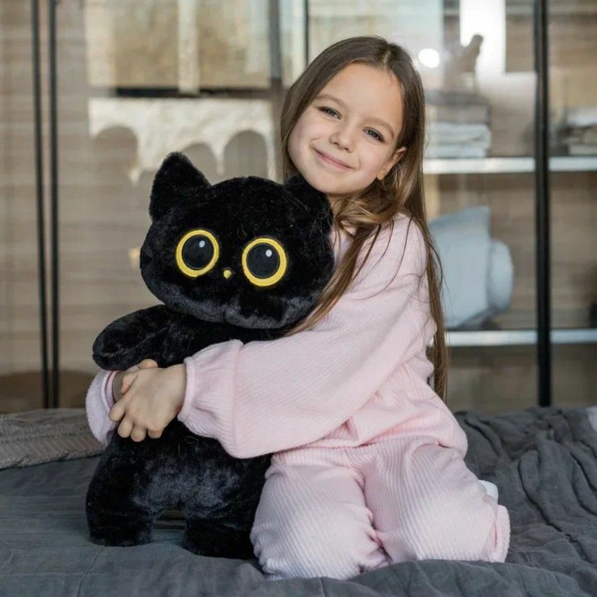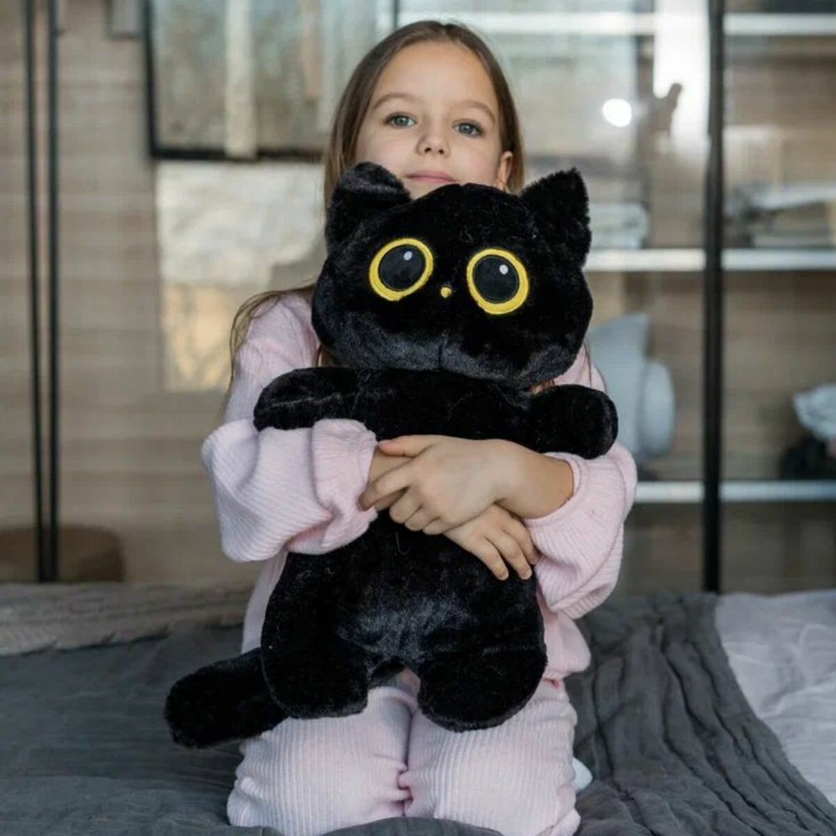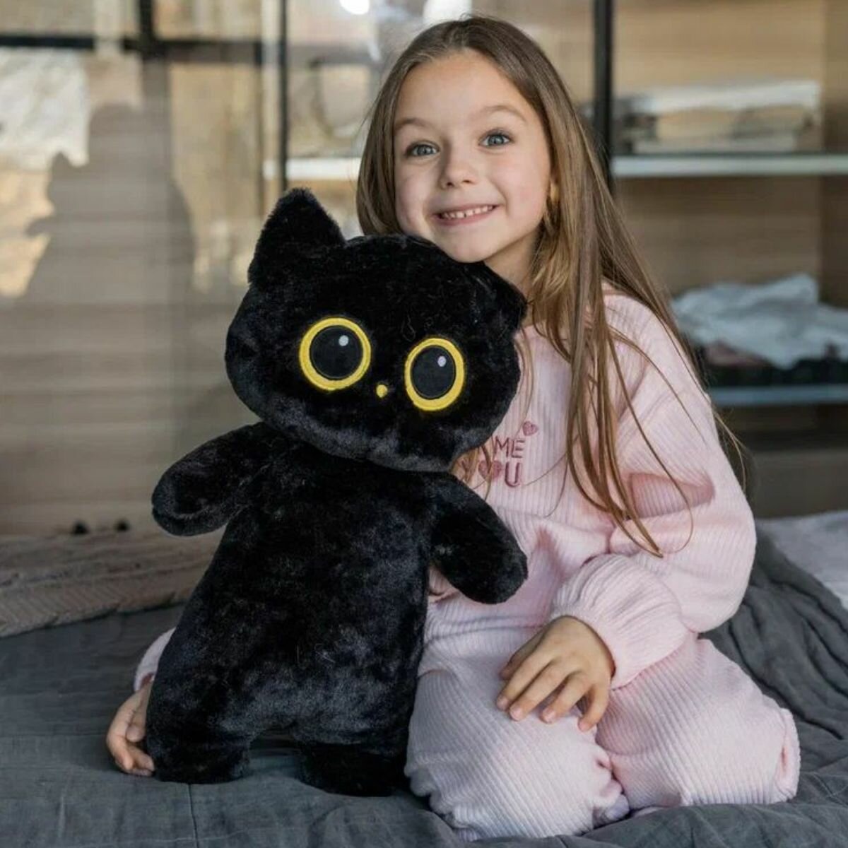 Мягкая игрушка котик с круглыми глазами 30 см черный