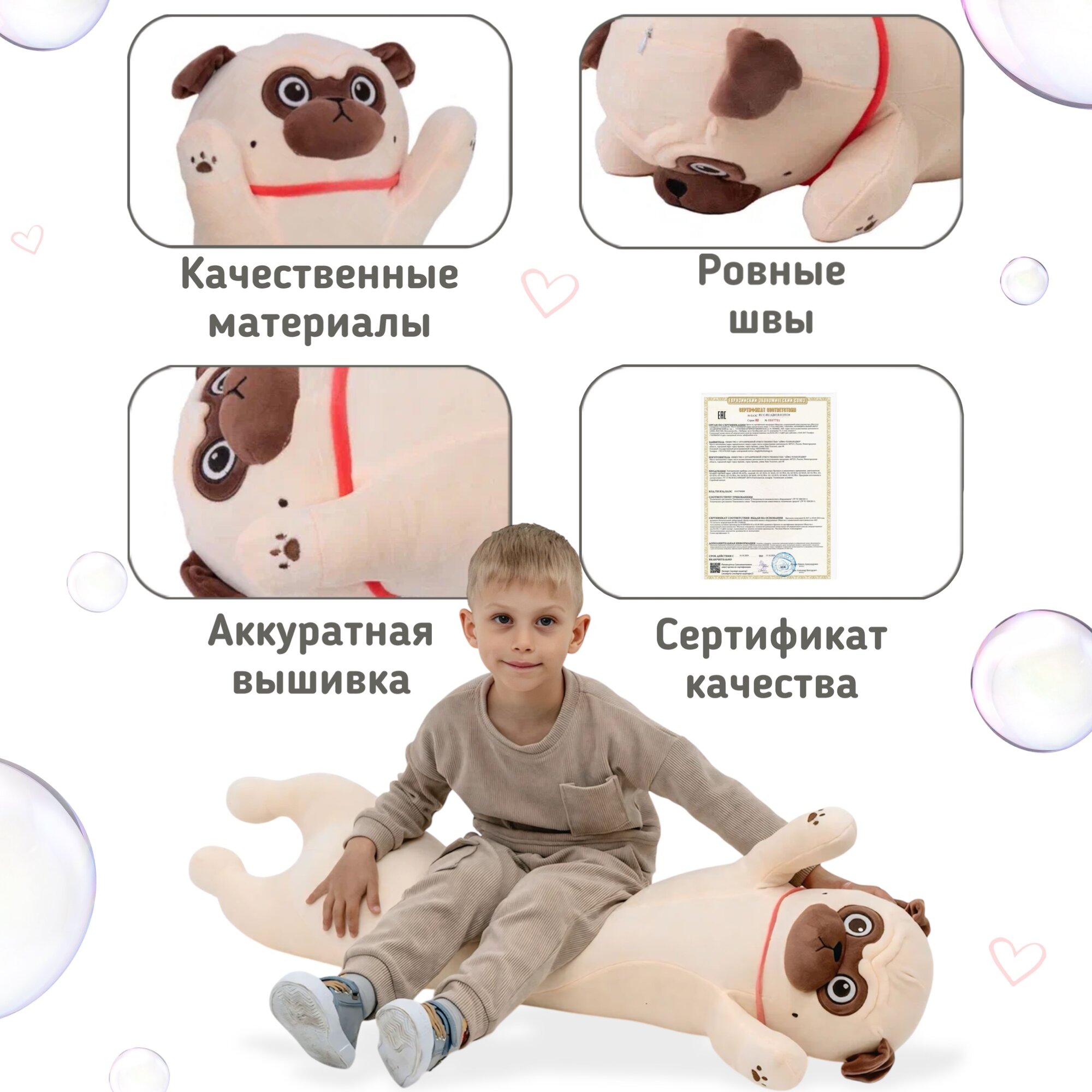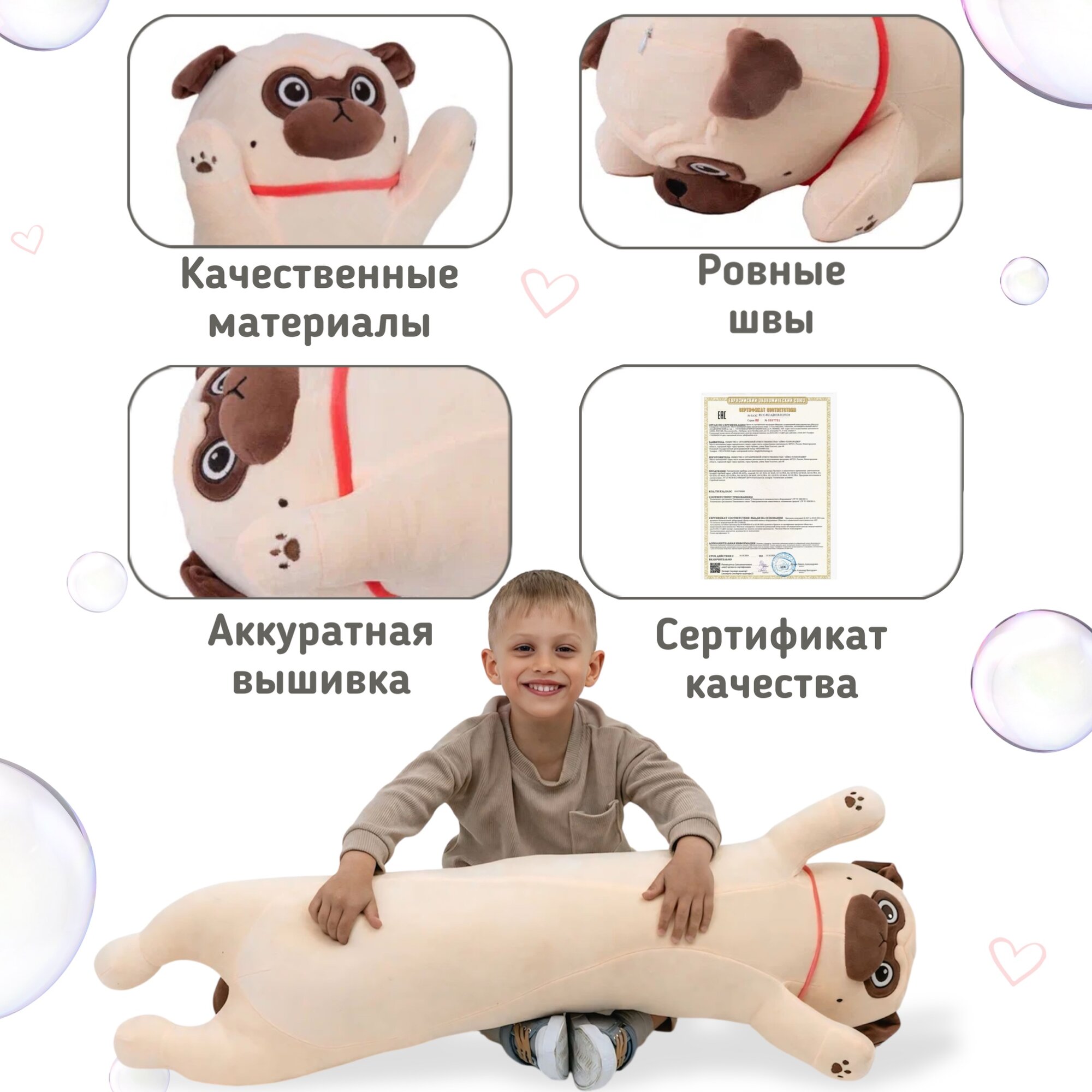 Мопс батон создан с вниманием к деталям: он выполнен из высококачественных и безопасных материалов, которые подходят даже для самых маленьких детей. Благодаря своей гипоаллергенности, игрушка мягкая подойдёт для любой возрастной категории, обеспечивая максимальный комфорт и безопасность.