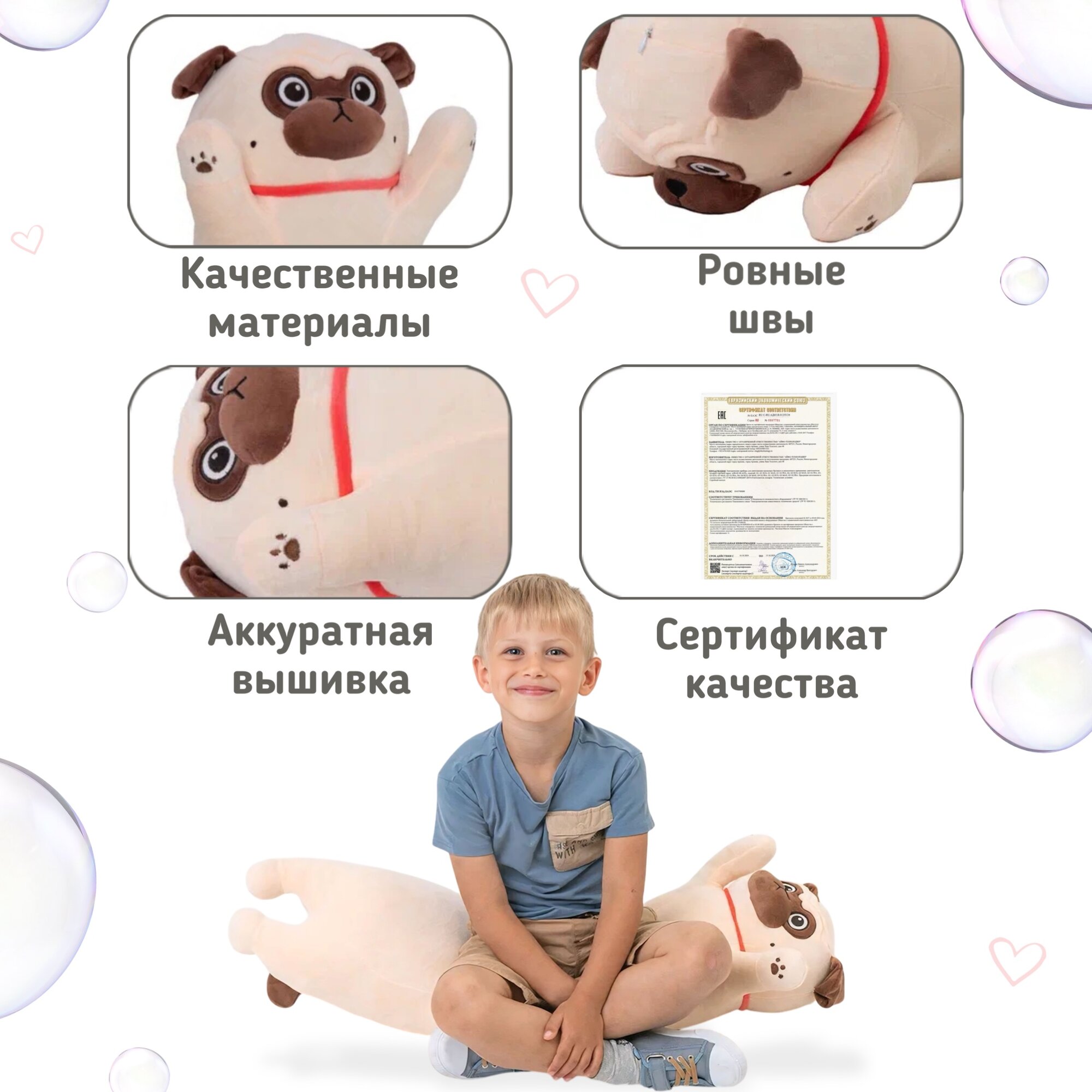 Мопс батон создан с вниманием к деталям: он выполнен из высококачественных и безопасных материалов, которые подходят даже для самых маленьких детей. Благодаря своей гипоаллергенности, игрушка мягкая подойдёт для любой возрастной категории, обеспечивая максимальный комфорт и безопасность.