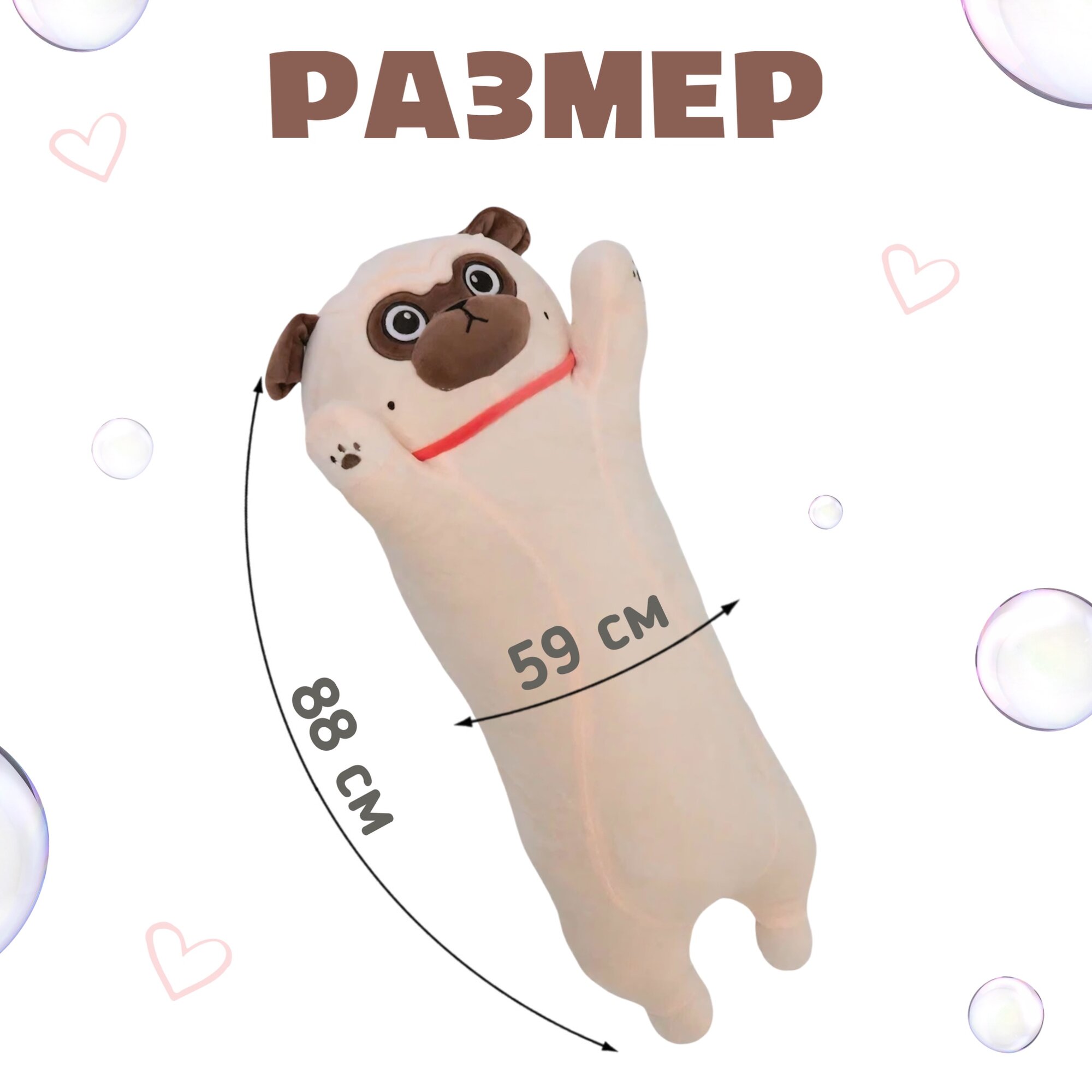 Мягкие игрушки длинные мопсы станут центром внимания в любом доме. Благодаря своим большим размерам в 85 см, малыши обожают обнимать этого очаровательного мопса, а взрослые могут использовать его в качестве декоративного элемента для дома или даже как подушку для отдыха. Такая игрушка прекрасно впишется в интерьер детской комнаты или станет замечательным подарком для близкого человека.
