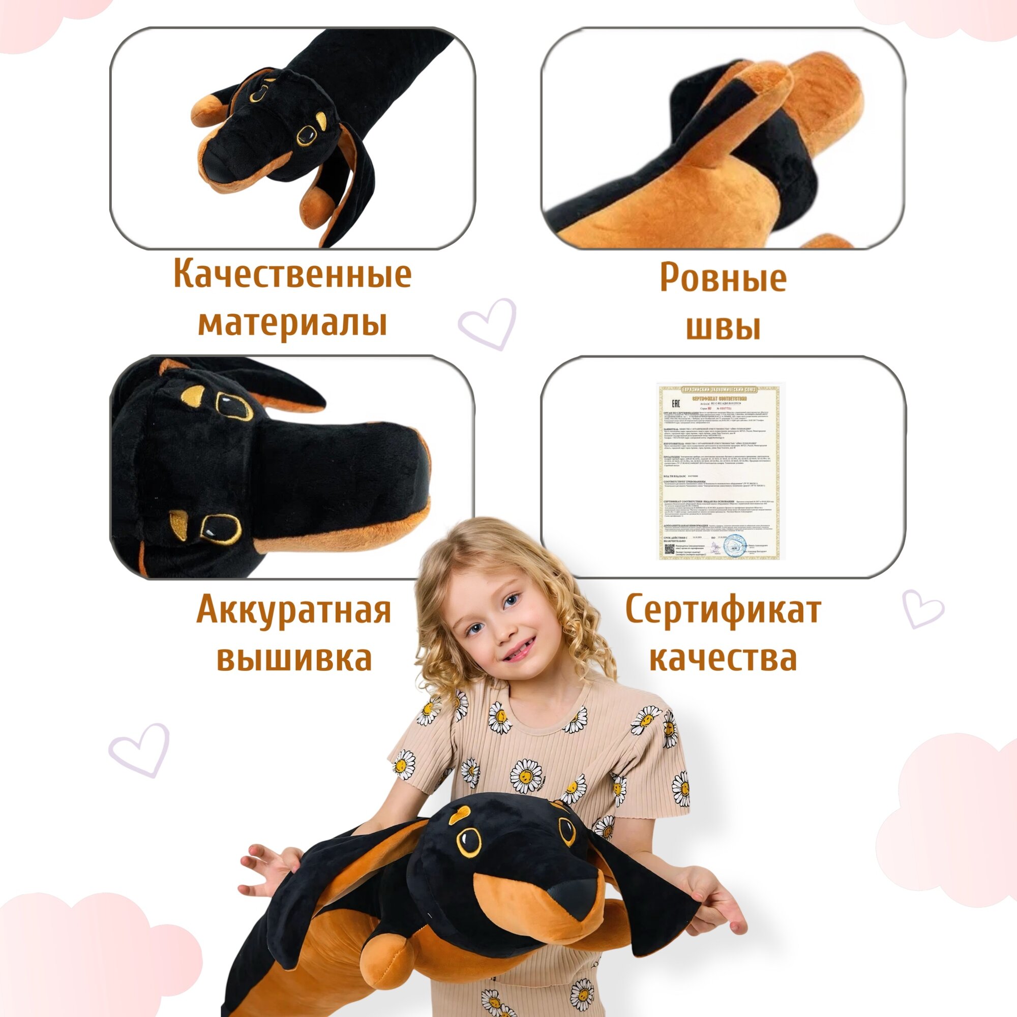 • Большая и длинная: С таким размером игрушка мягкая такса замечательна для обнимашек и игр!