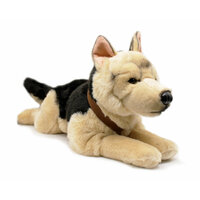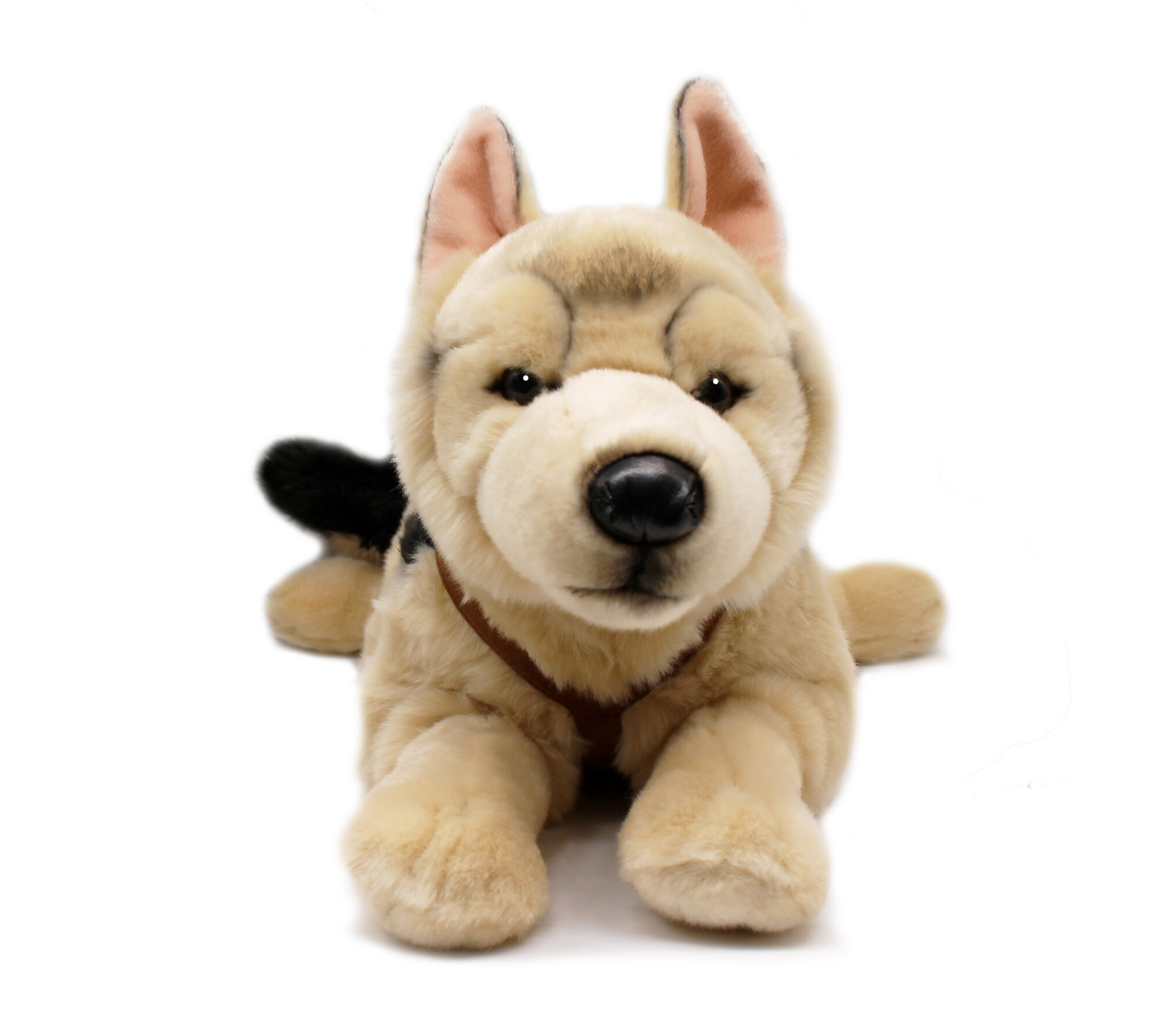 Высоко детализированная натуралистичная игрушка корейского бренда LEOSCO выполнена из нежного, приятного на ощупь искусственного меха различной фактуры и окраса, почти как у настоящей Немецкой Овчарки. Размеры игрушки составляют 66 см от кончика носа до кончика хвоста, 61 см по лапам и 30 см в высоту.
