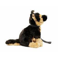 Милый и послушный питомец только и ждёт сигнала, чтобы поиграть! Игрушка корейского бренда LEOSCO из нежного, приятного на ощупь и сложного в прокрасе меха различной фактуры, почти как у настоящей собаки. На щенка надет ошейник с поводком из эко-кожи небольшой длины, исключающей возможность случайного удушения ребёнка. Ошейник не снимается. Длина Овчарки он кончика носа до кончика хвоста 39 см, высота 25 см, ширина 16 см. Щенок может сидеть или стоять, жёсткого каркаса игрушка не имеет. Надёжные материалы и фурнитура позволяют выдержать множество стирок. Наполнитель - синтетические волокна гранулы для устойчивости. Натуралистичность исполнения уникально сочетается с милыми и привлекательными для детей образами.