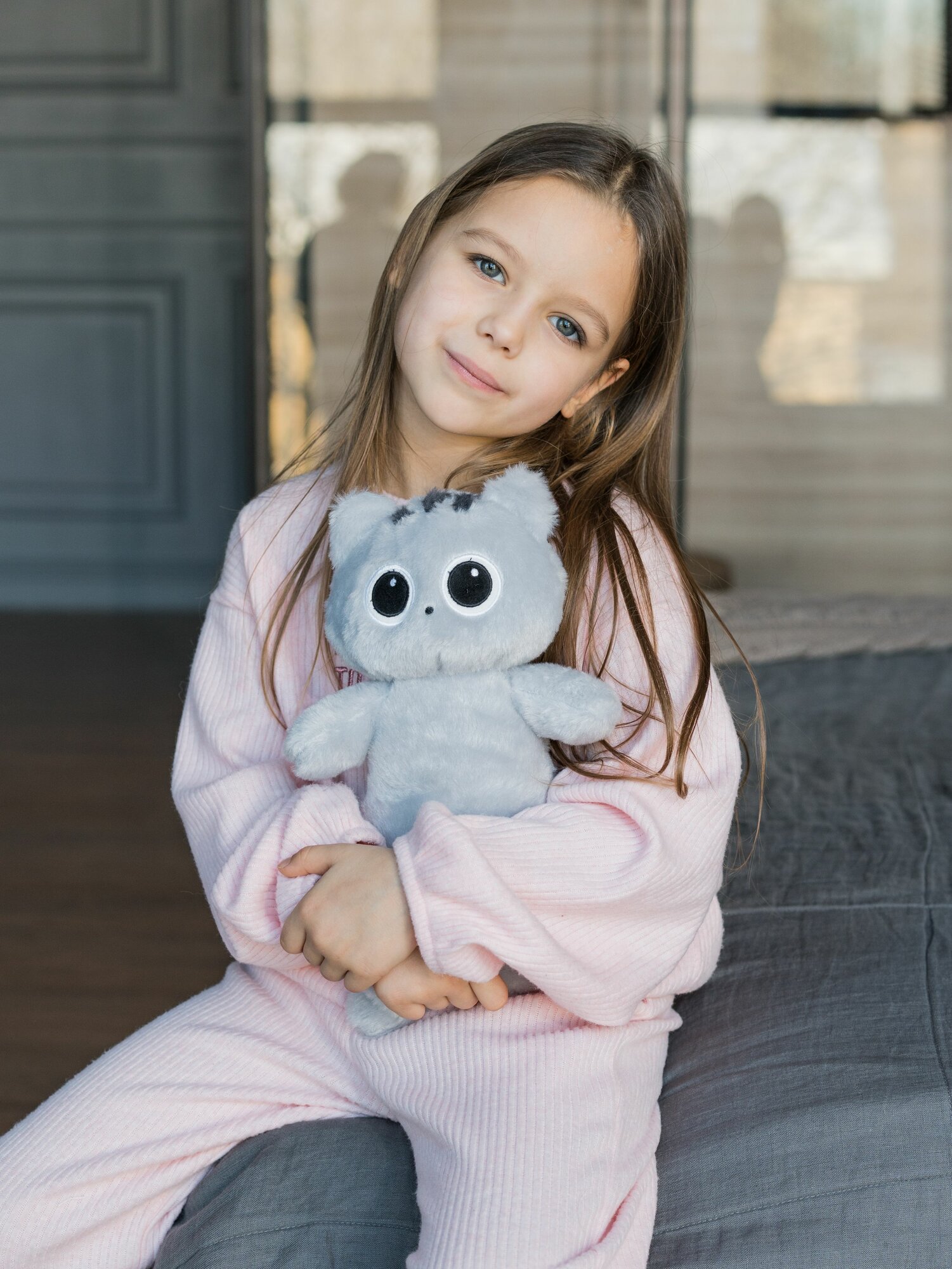 Мягкая игрушка котенок с круглыми глазами, 20 см, черный, для девочек