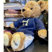 Особенности: - Медвежонок песочного цвета с марсала и синем любимом свитере Гарри Поттера. - Синяя бирка с надписью "Мир волшебства Гарри Поттера" на левой лапке. - Свитер легко одевается. - Свитер снимается, раскрывая медвежонка в бежевых штанах. - Герб Гарри вышит спереди свитера. - На нижней лапке - вышитый логотип Гарри Поттера.