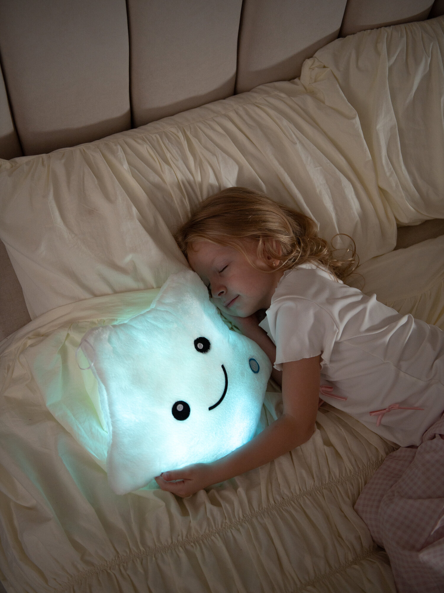 Такая подушка-ночник в виде звезды находка для детишек, которые боятся темноты. Плавное переливание света (светотерапия) расслабляет и успокаивает нервную систему ребенка. Свет плавно распределяется вокруг подушки и совсем не слепит. Подушка создаст уютную атмосферу.