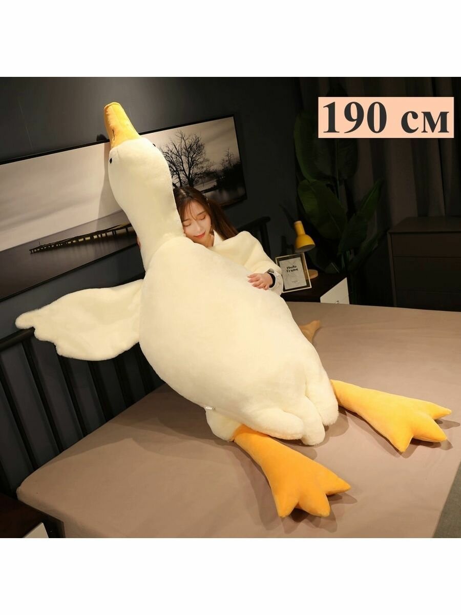 Мягкая игрушка-обнимашка «Гусь» 190 см Мягкий белый и пушистый Гусь-обнимусь – это милая игрушка-обнимашка, с которой приятно спать и играть. Плюшевый гусь всегда готов к крепким объятиям и активным играм детей. Игрушка подушка пошита из качественного безопасного материала, приятного на ощупь. Гипоаллергенный наполнитель синтепух. У гуся-обнимуся мягкая мордочка, красивые блестящие глазки и нежные пушистые крылышки, которые приятно трогать. Длинная уточка (гусь) послужит вам как игрушка антистресс и игрушка подушка. Украсьте комнату забавным трендовым гигантским гусем. Размер игрушки: 190 см. Гусь – идеальный подарок ребёнку и оригинальное украшение детской комнаты. Возьми за лапку детство!
