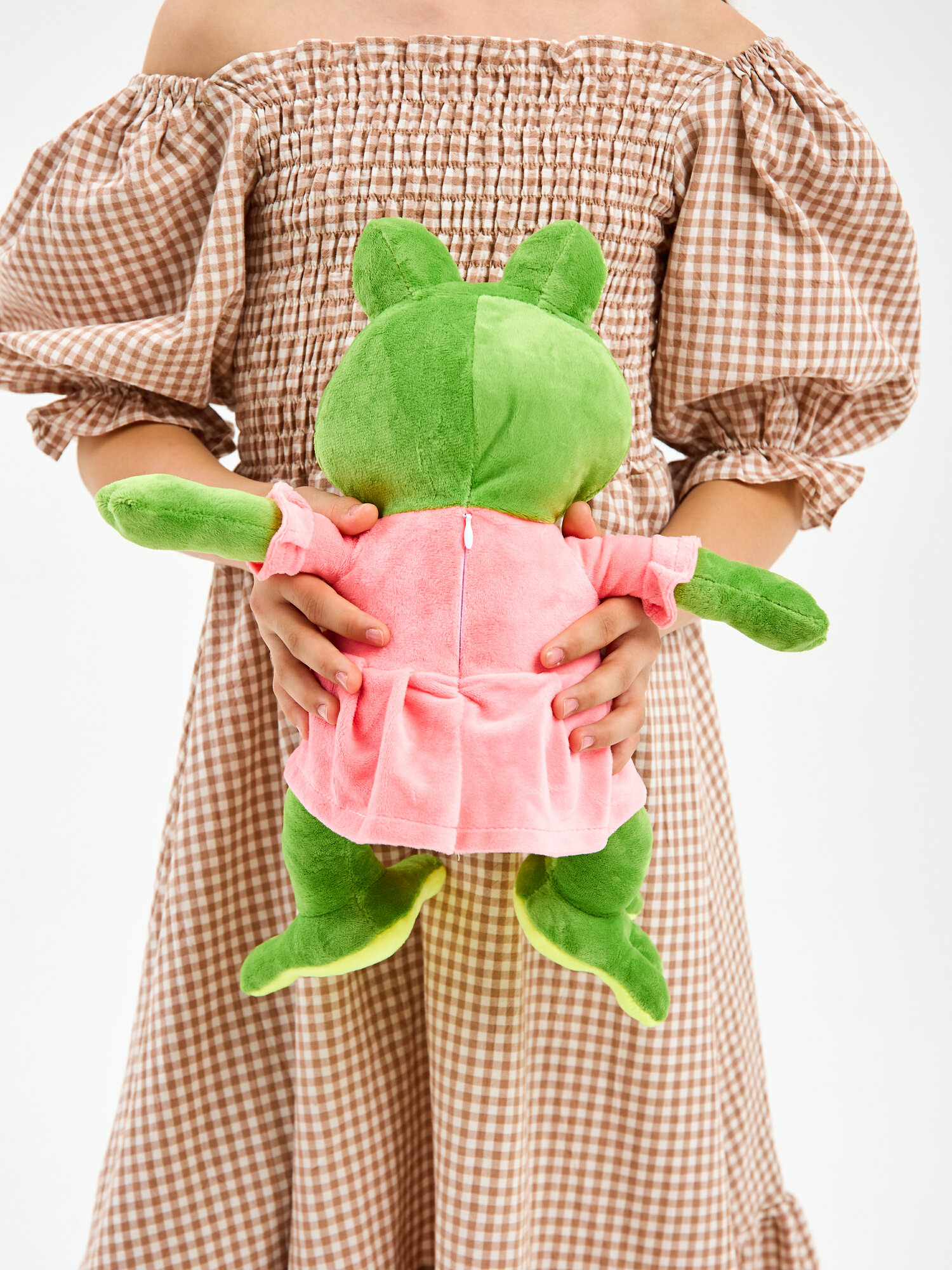 Лягушка в платье выглядит так мило, что не оставит равнодушным ни одного ребёнка. Это не просто игрушка, а стильный аксессуар для игры и уютных вечеров. Благодаря специальному замку, её можно легко стирать, что делает её уход совершенно простым и удобным.