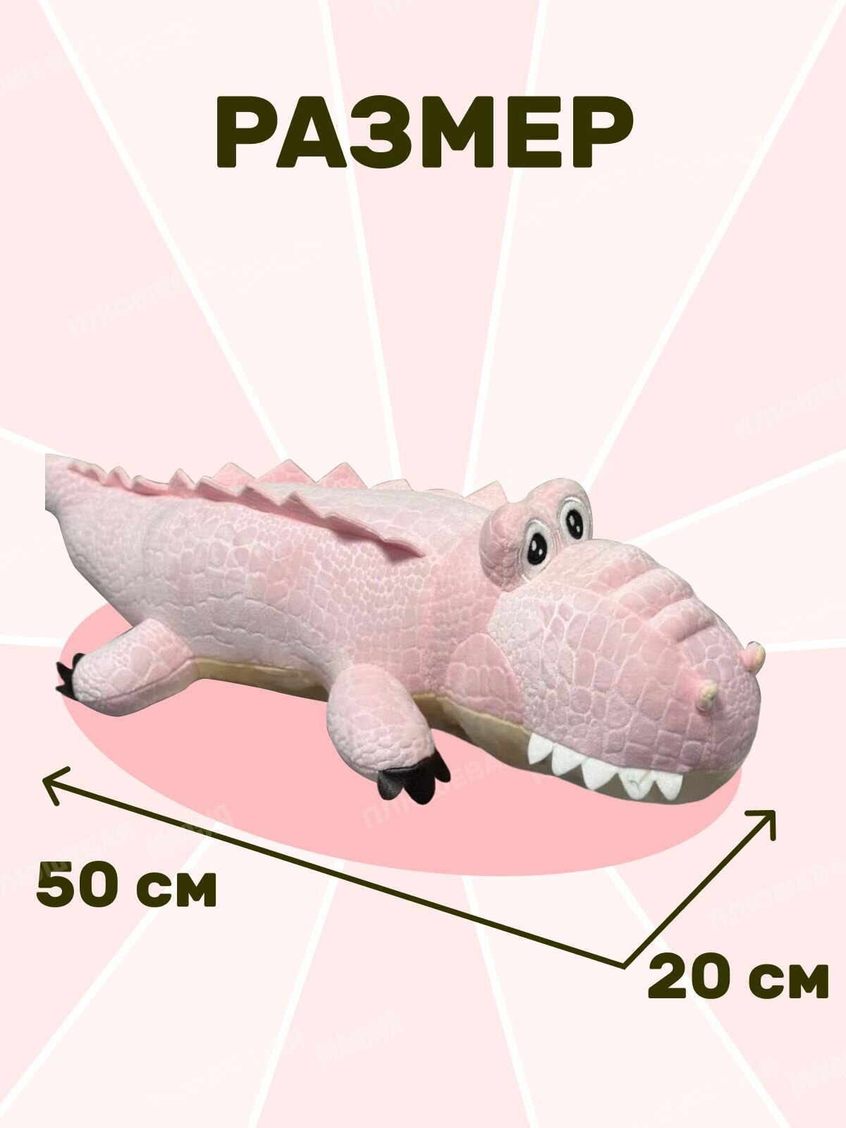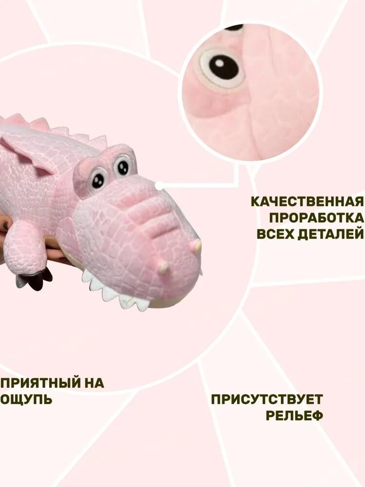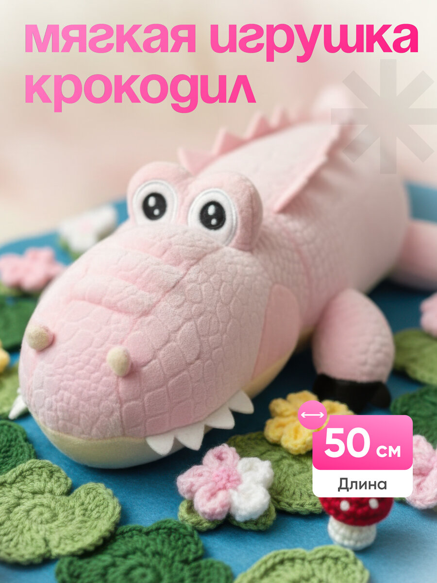 Эта большая мягкая игрушка, выполненная из нежного плюша, станет любимым другом вашего малыша и приемной мягкой подушкой для сна и отдыха. Ее оригинальный дизайн и нежный розовый цвет понравятся как девочкам, так и мальчикам. Наш крокодил создан с учетом всех требований к безопасности детских товаров, что делает его идеальной игрушкой для маленьких детей. Уникальная текстура и мягкость позволяют использовать его в качестве успокаивающей мягкой игрушки для сна. Такой аксессуар может стать ярким акцентом в любой детской комнате и приятным дополнением в интерьере. Плюшевая игрушка от Плюшевая Мафия гарантирует высокое качество материалов и долговечность. Эта игрушка достаточно большая, чтобы ребенок мог использовать ее для игры и в качестве мягкой подушки для отдыха. С ней приятно обниматься, засыпать и просыпаться! Наш розовый крокодил выполнен из гипоаллергенных материалов, что делает его безопасным даже для самых маленьких пользователей. Основные характеристики:- Материал: высококачественный плюш, наполнитель из безопасного синтетического волокна.- Размер: 50 см, идеально подходит для объятий и игры.- Цвет: нежный и привлекательный розовый.- Возраст: подходит для детей с самого рождения. Эта мягкая игрушка крокодил станет великолепным дополнением к коллекции мягких игрушек вашего ребенка. Её можно использовать не только для игры, но и как декоративный элемент в детской комнате.