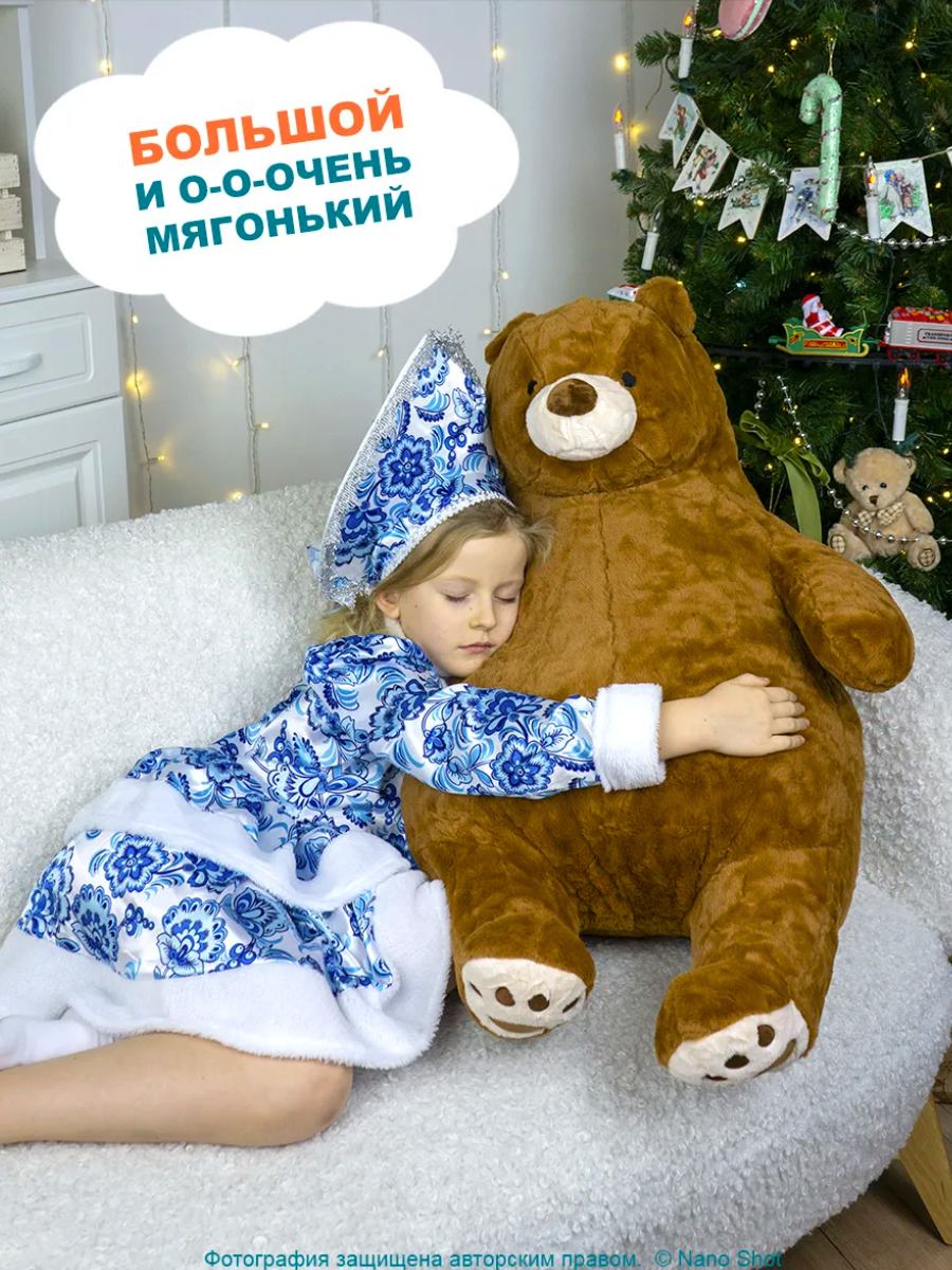 Этот плюшевый мишка станет отличным подарком для девочки, мальчика, подростка или даже взрослого - ведь кто сможет устоять перед таким милым и смешным созданием? Большой плюшевый мишка станет отличным элементом интерьера и подарит множество приятных моментов обнимашек и игр.