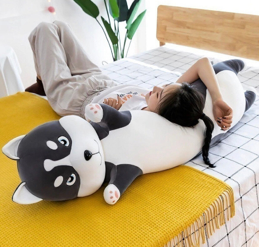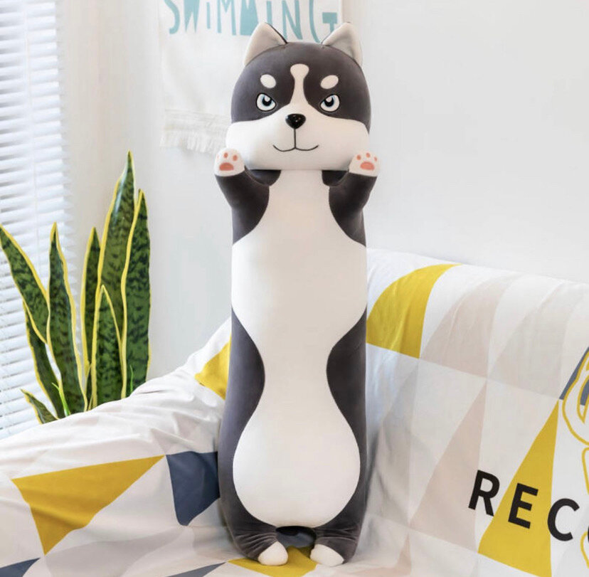 Купить Мягкая игрушка-подушка длинный хаски 110 см/Большая детская обнимашка собака батон с доставкой по всей России.