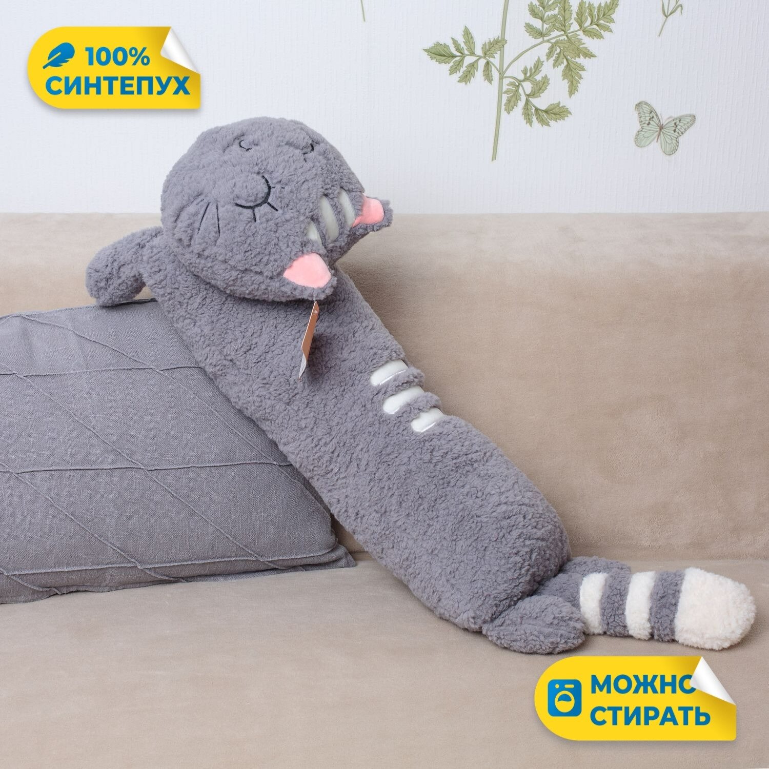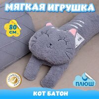 Купить Мягкая игрушка подушка Кот Батон для девочек и мальчиков / Плюшевая Кошка для детей KiDWoW серый 80см с доставкой по всей России.