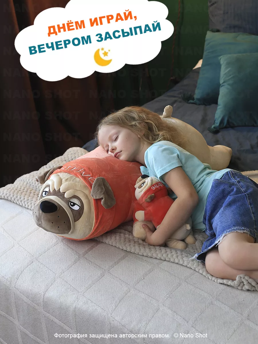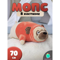 Мягкая игрушка-подушка Собака Мопс в красном костюме, 70 см: сравнение цен, характеристики, фото, актуальное наличие и цены.