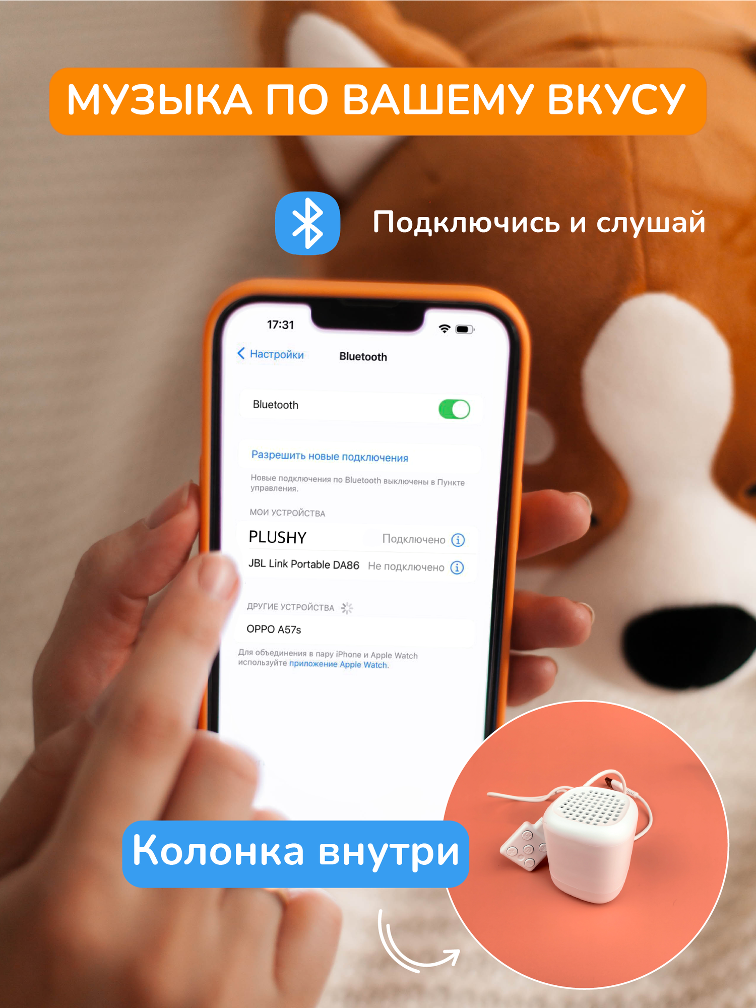 Бестселлер этого года - PLUSHY, портативная Bluetooth колонка с мощным чистым звучанием в плюшевой игрушке анти-стресс в виде собачки. Можно мять, обнимать и даже спать с ним в обнимку. Простое подключение к телефону по Bluetooth в два клика. Управление игрушкой с помощью панели управления на лапке PLUSHY или с телефона: регулировка громкости, переключение треков, включение/выключение. При производстве PLUSHY мы использовали гипоаллергенные премиум материалы с грязеотталкивающими свойствами. Он прост в уходе. PLUSHY на ощупь нежный, как молочная пенка на кофе, и воздушный, как облачко. Ваш ребенок полюбит PLUSHY с первого прикосновения и первой ноты. СЕТЕВОЕ ЗАРЯДНОЕ УСТРОЙСТВО НЕ ВХОДИТ В СТОИМОСТЬ УСТРОЙСТВА И ЕГО МОЖНО ПРИОБРЕСТИ ОТДЕЛЬНО.
