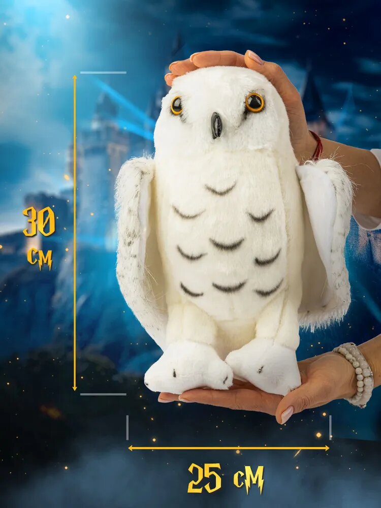 Мягкая игрушка Букля сова – любимый питомец Гарри Поттера. Полярная сова (Хедвига), станет отличным подарком на праздник для всех поклонников магической вселенной Harry Potter. Мягкий и пушистый совенок подойдет для детей и взрослых любителей мира чародейства и волшебства. Красивая плюшевая игрушка станет оригинальным подарком как для взрослого, так и для ребенка поклонника фильма про волшебников. Мягкая игрушка - точная копия совы из известного фильма. Для ухода за игрушкой протрите ее мочалкой, слегка смоченной теплой мыльной водой, затем чистой водой и оставьте высыхать. Сова игрушка высотой около 29 см. Материал: плюш.