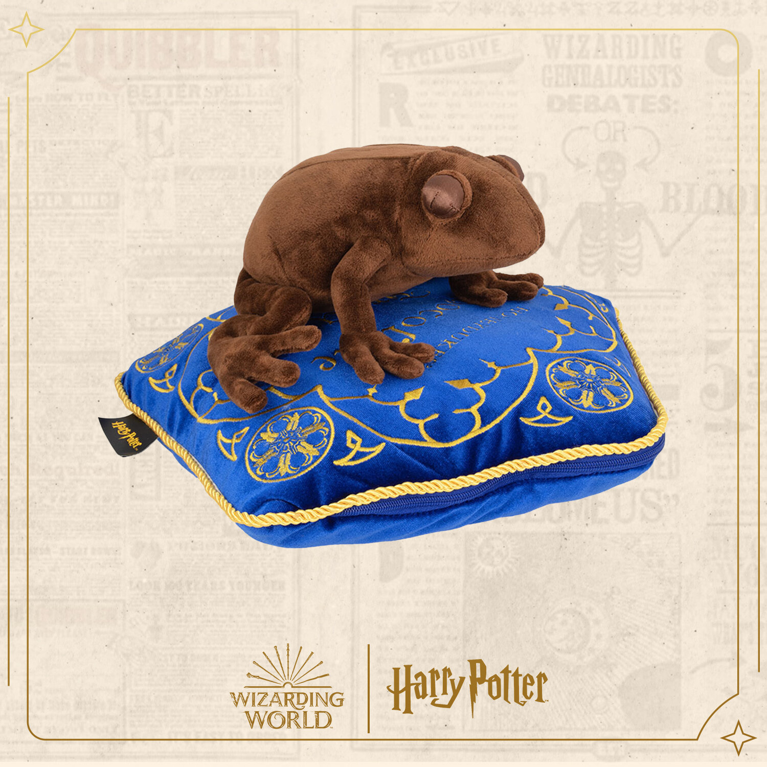 Гарри Поттер впервые попробовал Шоколадных лягушек в "Хогвартс-Экспрессе". Каждая коробка от лягушки содержит коллеккционную карточку известного волшебника. На первой карточке Гарри был изображен Альбус Дамблдор. Размер лягушки 21*28*10 см, размер подушки 36*36 см.