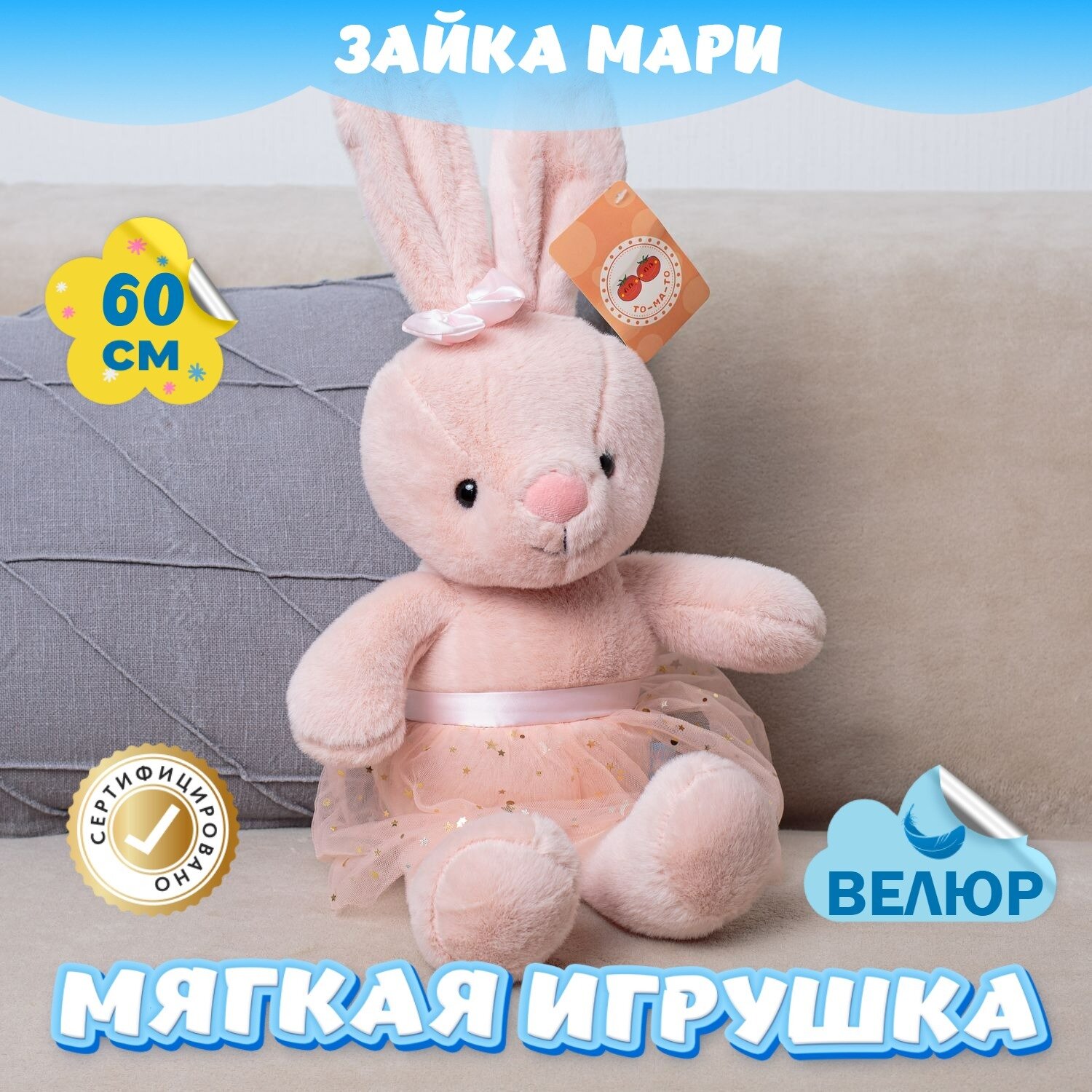 Купить Мягкая игрушка Зайка в юбке для девочек и мальчиков / Велюровый Заяц для малышей KiDWoW розовый 60см с доставкой по всей России.