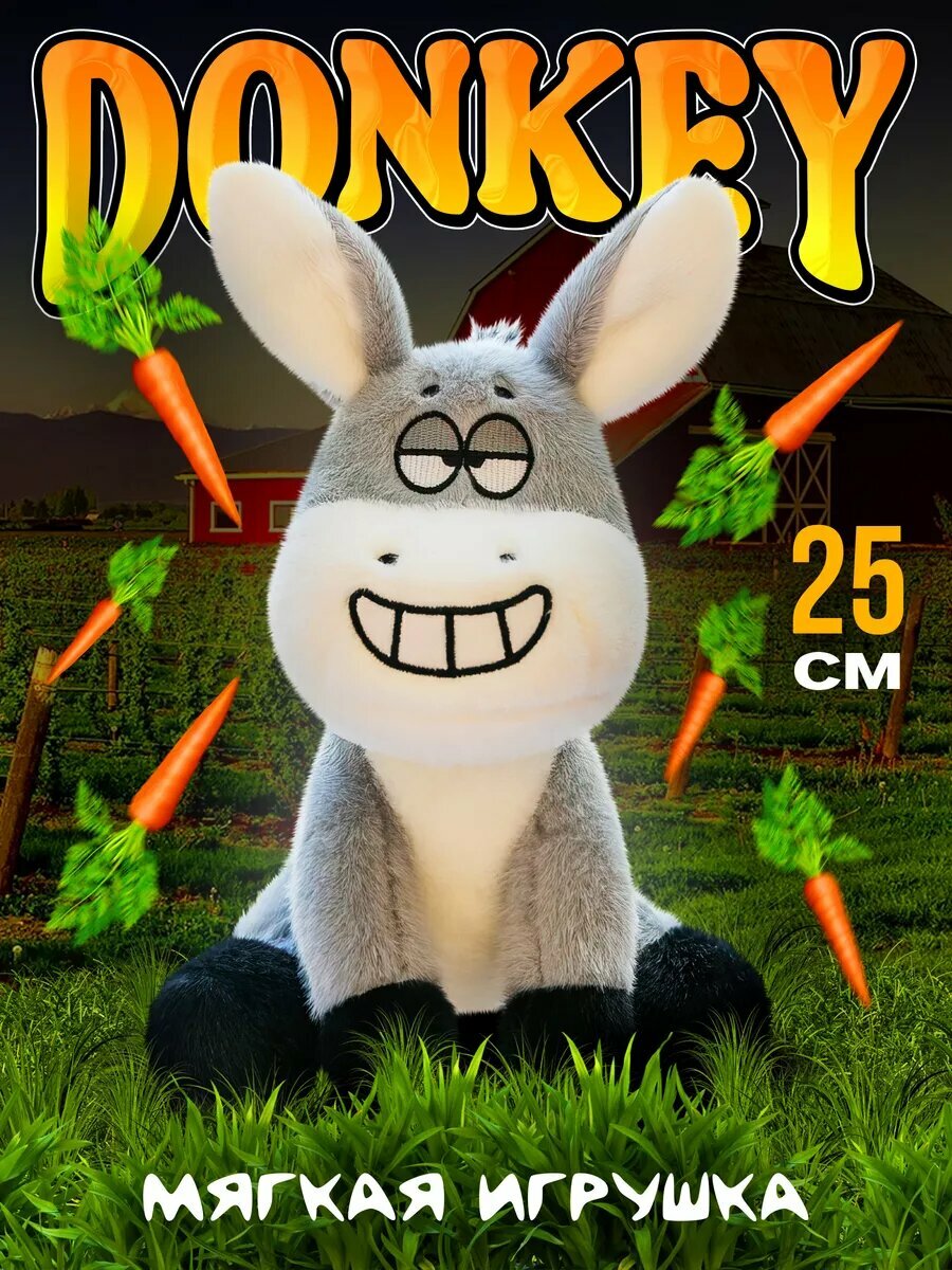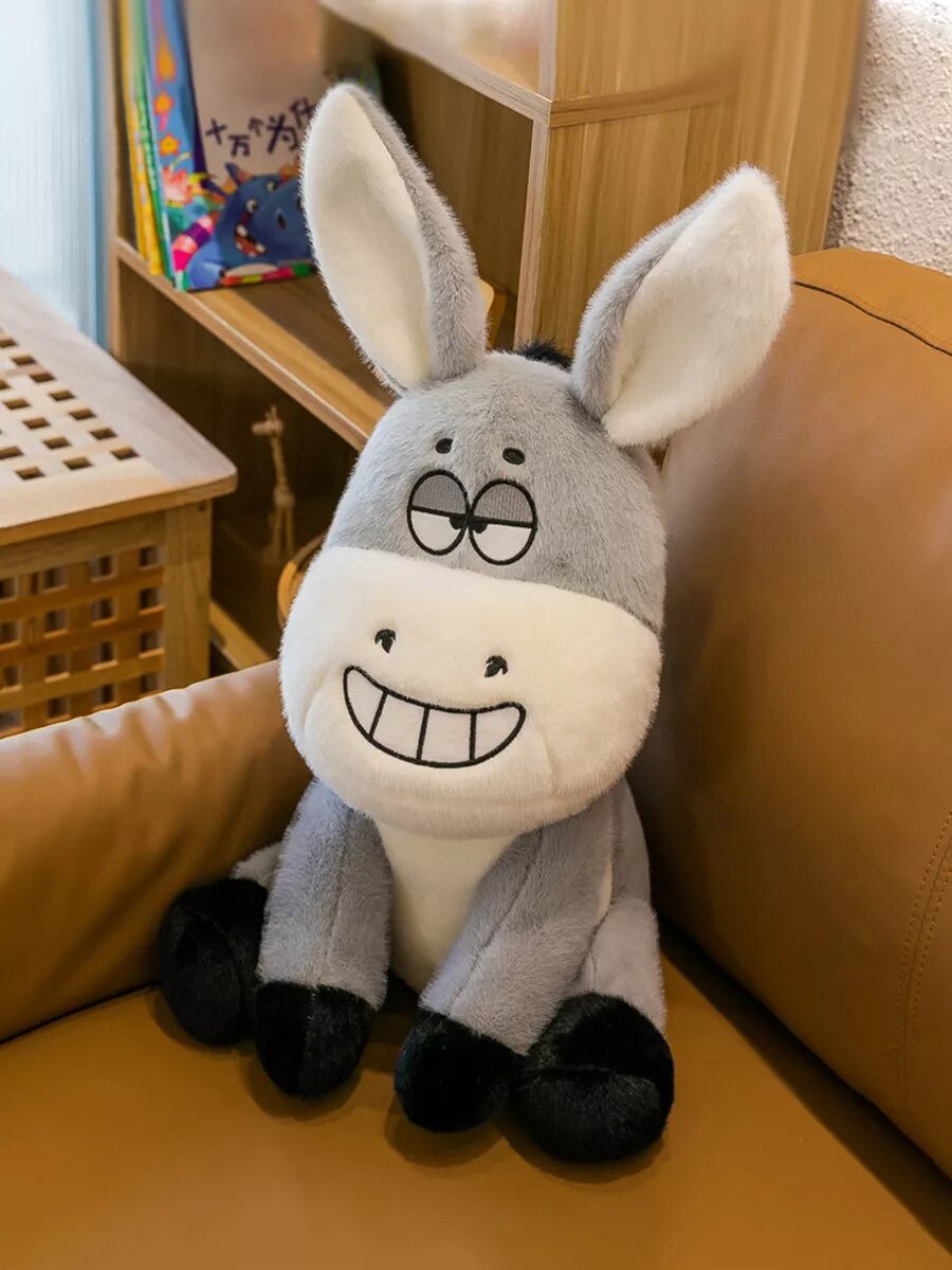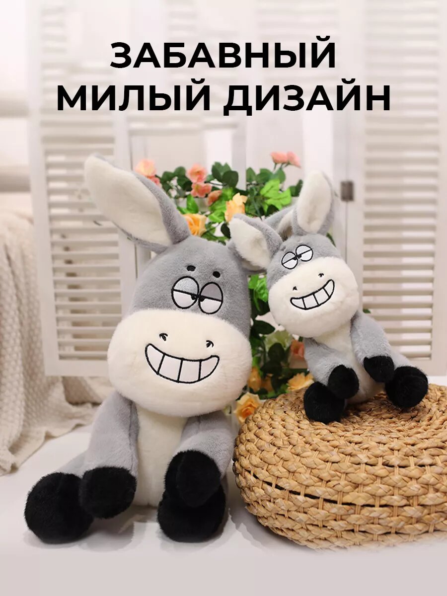 Познакомьтесь с мягкой плюшевой игрушкой для деток — смешной ослик Donkey высотой 25 см. Идеальный подарок для детей и взрослых, которые любят забавные и милые игрушки. Этот очаровательный ослик с широкой улыбкой на лице обязательно поднимет настроение каждому, кто на него взглянет. Его большие уши и выразительные глаза добавляют ему особого шарма, а качественный плюш делает его невероятно мягким и приятным на ощупь. Порадует каждого своим забавным дизайном, будет приятным спутником для сна на протяжении многих лет и симпатичным декором в комнате ребенка, который будет защищать его от кошмаров. С размером 25 см, этот ослик легко поместится в любую детскую кроватку или станет украшением вашей спальни и гостиной. Обладает антистрессовыми свойствами — достаточно обнять эту плюшевую игрушку, чтобы почувствовать себя спокойнее и расслабленнее. Ведь дети доверяют своим игрушкам и с удовольствием обнимают их во время игры или сна. Превосходное качество материалов делает игрушку безопасной и долговечной, а её компактный размер позволяет брать с собой куда угодно. Игрушка выполнена из гипоаллергенных материалов, что делает её безопасной для самых маленьких. Подарите себе или своим близким частичку радости с этим забавным и добрым осликом Donkey. Не упустите возможность порадовать сына, дочь или вашего внутреннего ребенка таким удивительным другом! На фото: ослик, который поменьше — 25 см в высоту.