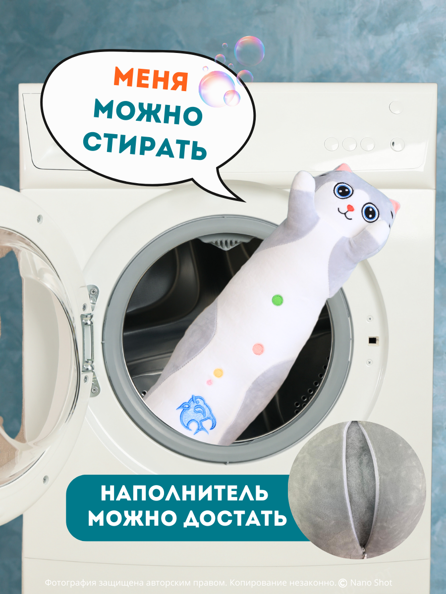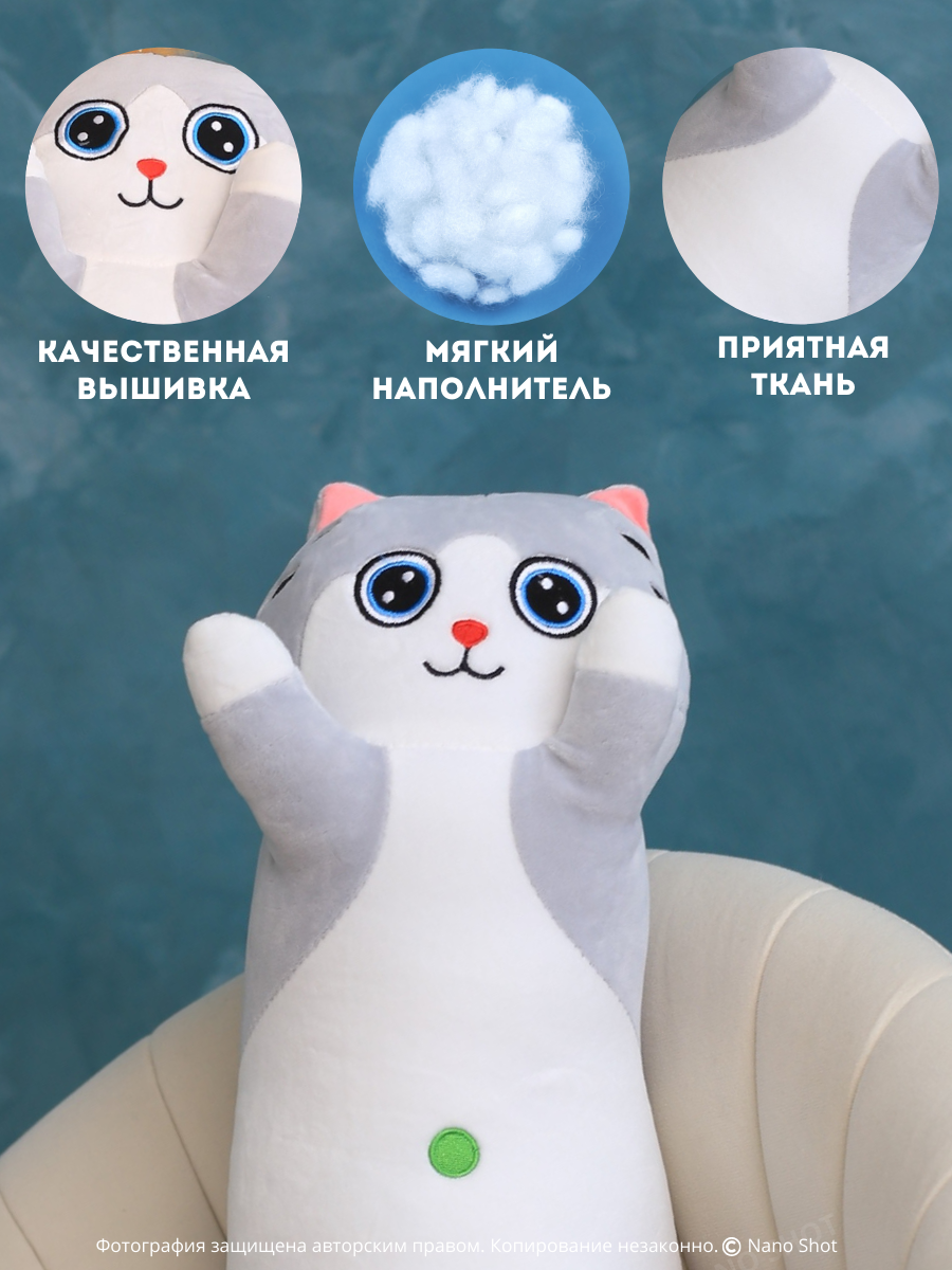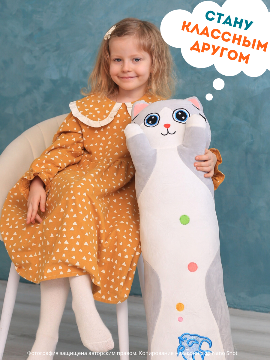 Мягкая плюшевая игрушка кот-батон Милый Котенок серый, 60 см: сравнение цен, характеристики, фото, актуальное наличие и цены.