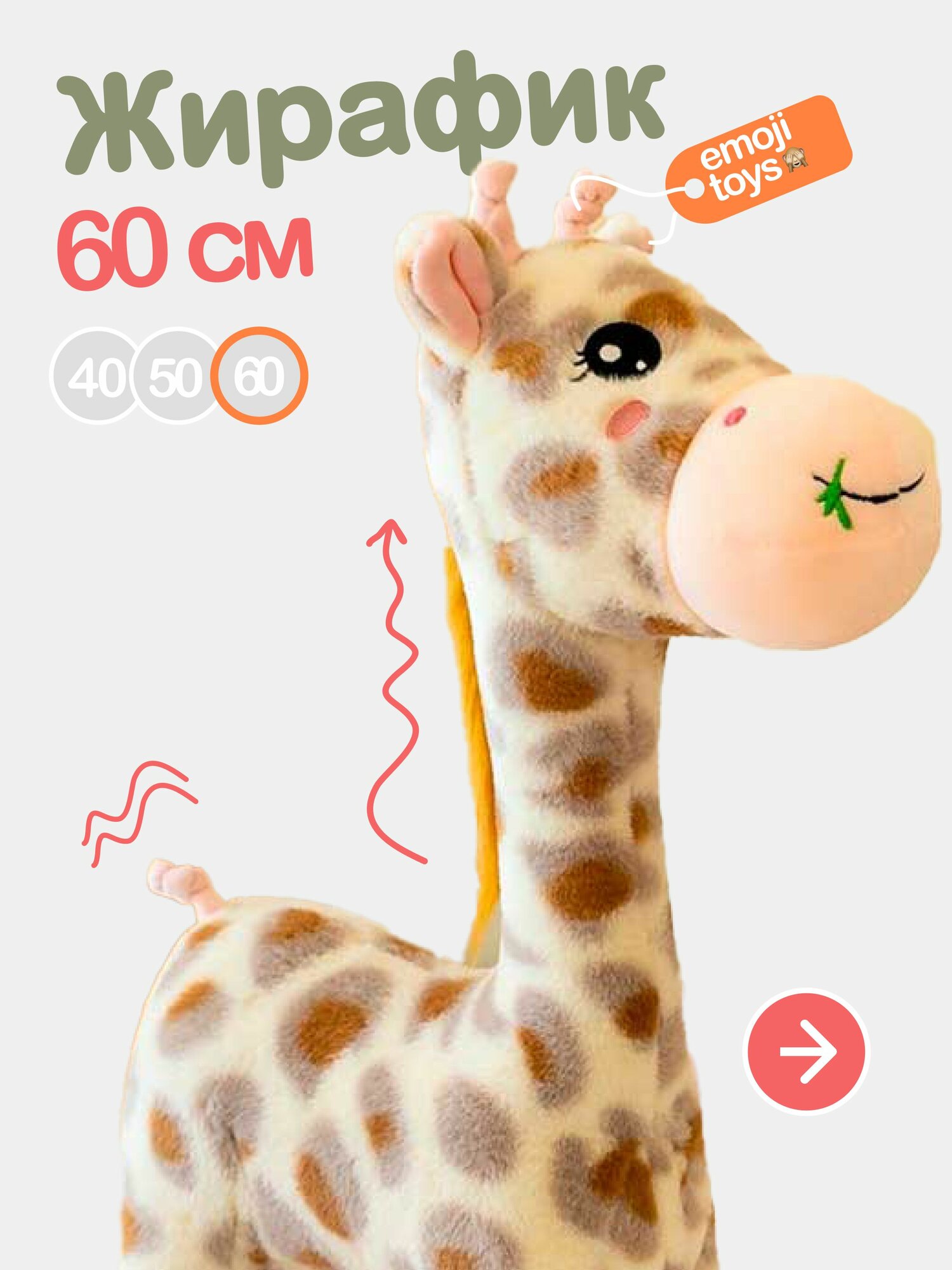 Купить Мягкая плюшевая игрушка Жираф 60 см. Экзотическое африканское животное с доставкой по всей России.