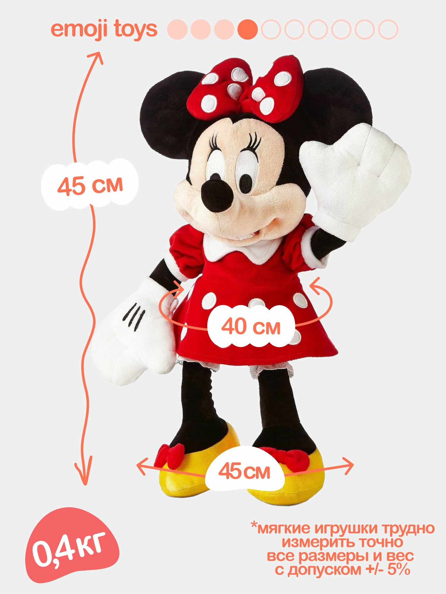Купить Мягкая плюшевая мышка Минни Маус 45 см. Герой мультфильмов Дисней. с доставкой по всей России.