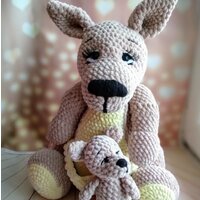 Купить Мягкая вязаная плюшевая игрушка кенгуру с кенгуренком, бежевый 45 см, вязаный, ручная работа с доставкой по всей России. Мягкая вязаная плюшевая игрушка кенгуру с кенгуренком, бежевый 45 см, вязаный, ручная работа: сравнение цен, характеристики, фото, актуальное наличие и цены.