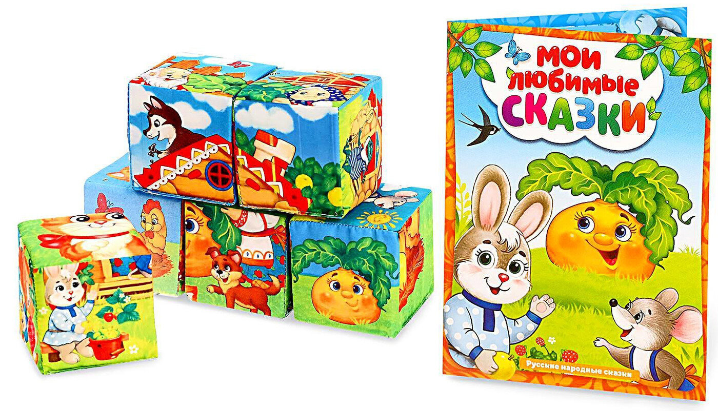 Купить Мягкие кубики «Мои любимые сказки» с книгой, Теремок, Колобок, Репка и др, развитие тактильного восприятия, 6 набивных кубиков 8 х 8 см с доставкой по всей России.
