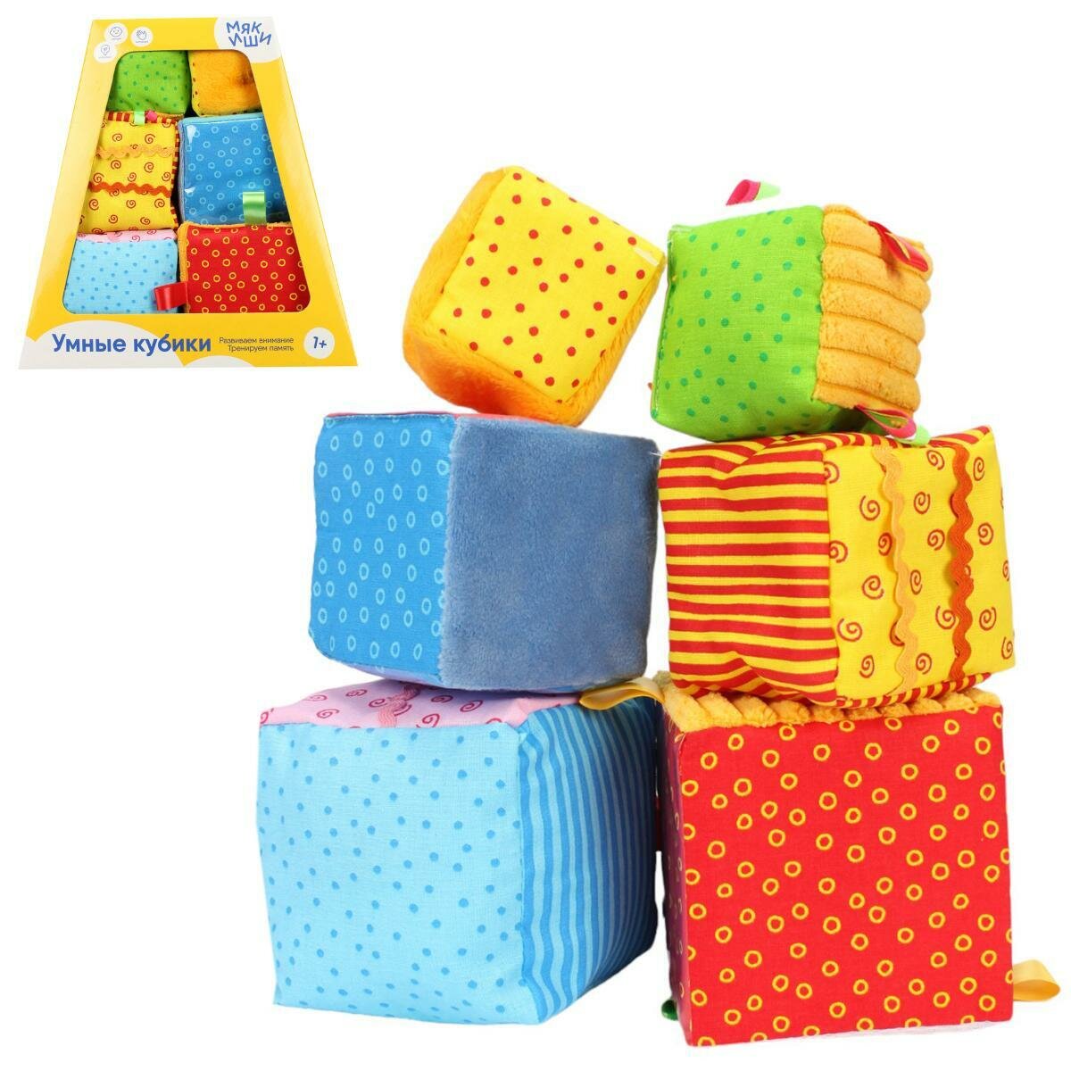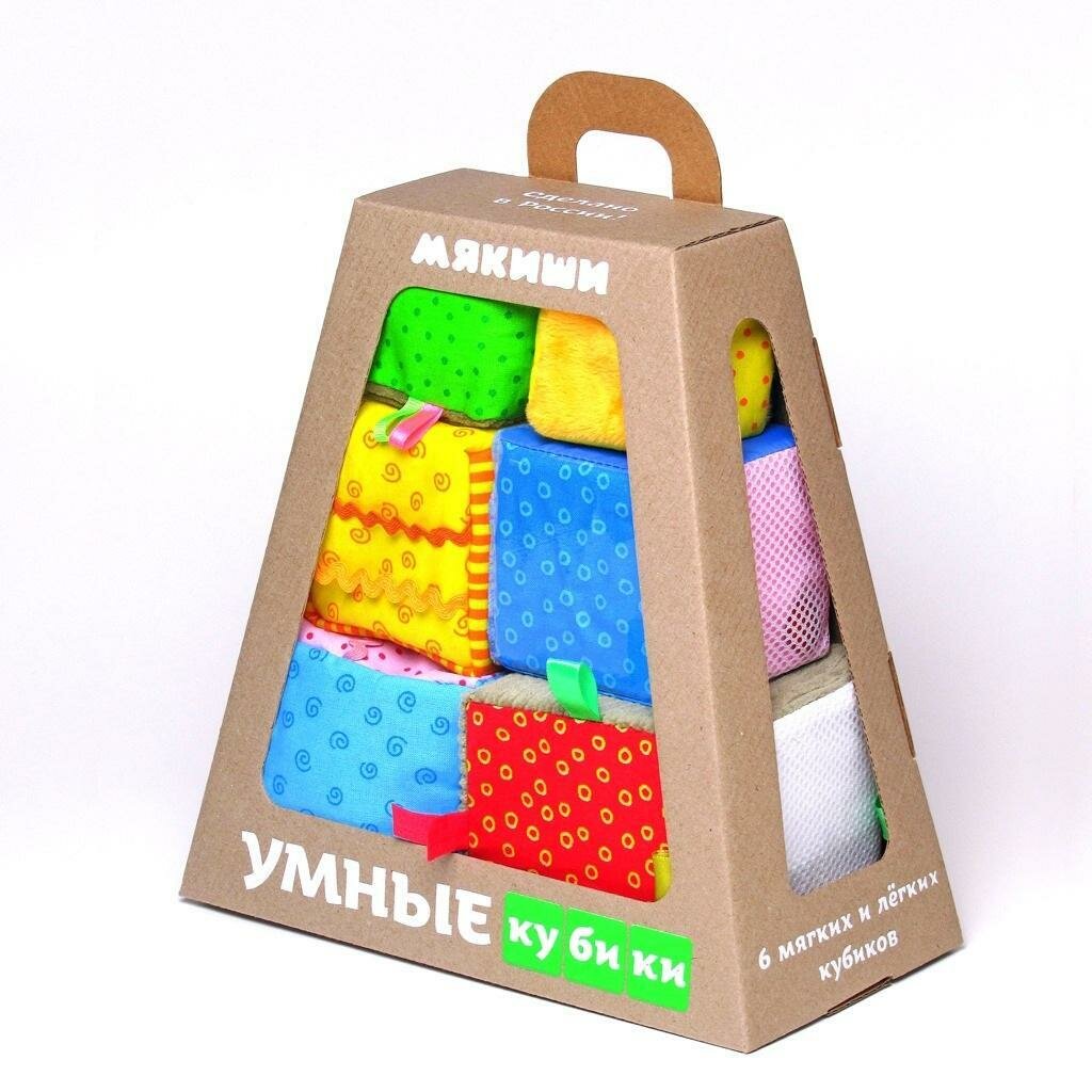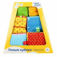Красочный развивающий набор Умные кубики. В наборе 6 кубиков трех размеров, изготовленных из разнообразных по цвету и фактуре материалов и с разными наполнителями. Грани кубиков украшены занимательными для малыша деталями, которые он с интересом будет исследовать - цветные разнофактурные петельки, цветная тесьма, пуговички, зашитые под сеточку. Из кубиков можно не только строить башенки и различные конструкции, но и поиграть в 10 "умных" игр. Игровые упражнения с Умными кубиками обогащают опыт тактильных ощущений ребенка, стимулируют речевое развитие, формируют представления о свойствах предметов, развивают внимание и зрительную память.