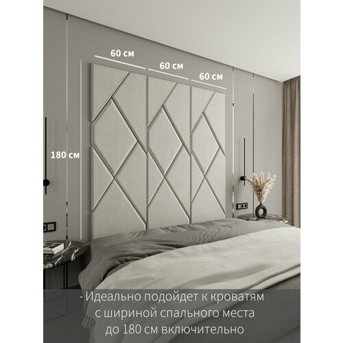 Купить Мягкая стеновая панель, изголовье для кровати 180×60 см, цвет теплый белый с доставкой по всей России. Мягкая стеновая панель, изголовье для кровати 180×60 см, цвет теплый белый: сравнение цен, характеристики, фото, актуальное наличие и цены.