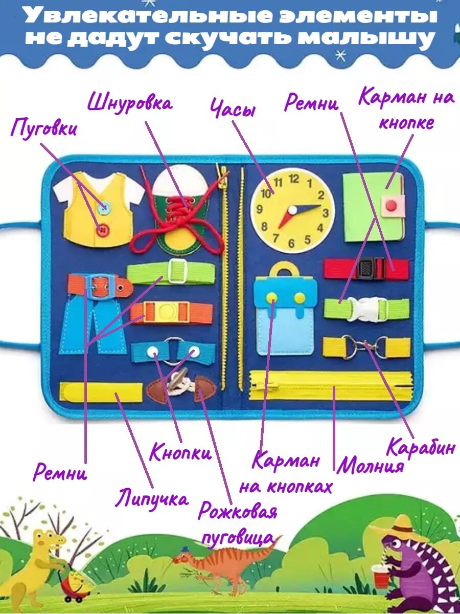 Мягкий бизиборд для малышей развивающая игрушка в дорогу