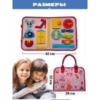 Мягкий бизиборд - развивающая игрушка для мальчиков и девочек, интересна как для малышей так и для деток постарше. Мини бизиборд - интересное занятие и обучающая игра. Книжка бизиборд для маленьких станет любимой игрушкой для вашего малыша. Мягкая дорожная игрушка заинтересует дошкольника познавательными и увлекательными элементами. Элементы держатся с помощью кнопок, застежек, липучек. Играя в бизиборд-чемоданчик малыш тренирует логику, внимание, усидчивость. Прокачивает с помощью развивашки мышление, воображение, логику. Легкий бизиборд развивашка тренирует координацию движений и мелкую моторику. Обучающий бизиборд улучшает память, расширяет кругозор. Ускоряется формирование речи. Изучайте алфавит. Развивайте мелкую моторику рук. Узнавайте цифры. Собирайте пазл-головоломку. Запоминайте цвета. Знакомьтесь с формами и фигурами. Развивайка для детей выполнена из безопасных гипоаллергенных материалов - мягкой тактильно приятной ткани текстиля – фетра. Бизиборт поможет приобрести целый набор важных навыков: открывать и закрывать ремень на брюках, застегивать молнию на куртке и кофте, застегивать кнопки, прилеплять липучки и завязывать шнурки. Настольные игры для детей подойдут как для индивидуальной игры, так и для совместного досуга с друзьями в садике или с родителями дома, на отдыхе, даче, в гостях. Дорожный бизиборд удобно взять с собой в путешествие на машине, самолете или поезде. Можно играть в коляске. Универсальные и безопасные детские развивалки используют для семейных игр, игр в дорогу, на море. Набор станет долгожданным подарком для ребенка до года и от 1 года, 2+, 3+, 4+ и 5 лет на день рождения. Логические игры с разнообразными замочками станут интересным подарком в садик для внучки и внука. Мягкий бизиборд подойдет в качестве креативного подарка мальчику и подарка девочке. Умные игры развивашки для малышей — интересный подарочный набор для племянницы, племянника. Прикольный подарок крестнику, крестнице на Новый год, Рождество или любой другой праздник.
