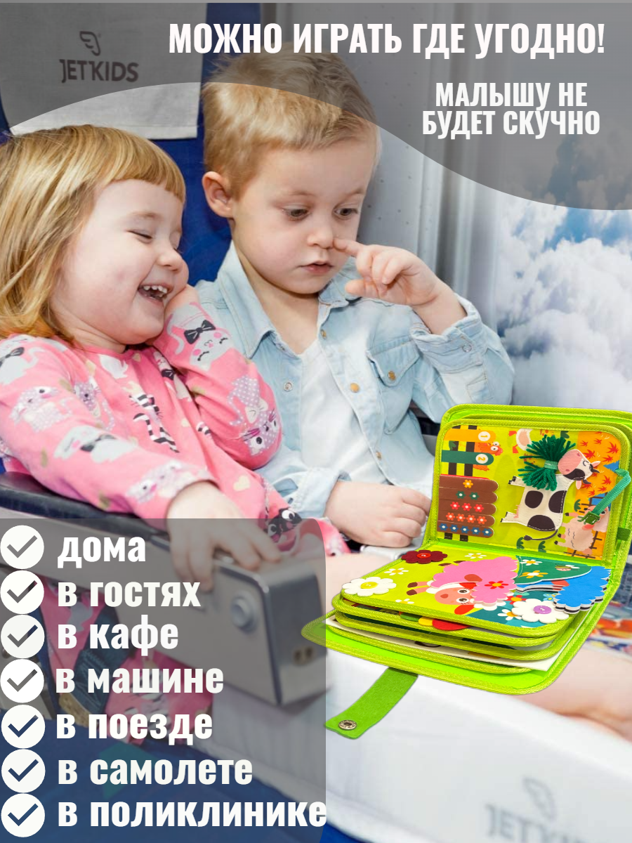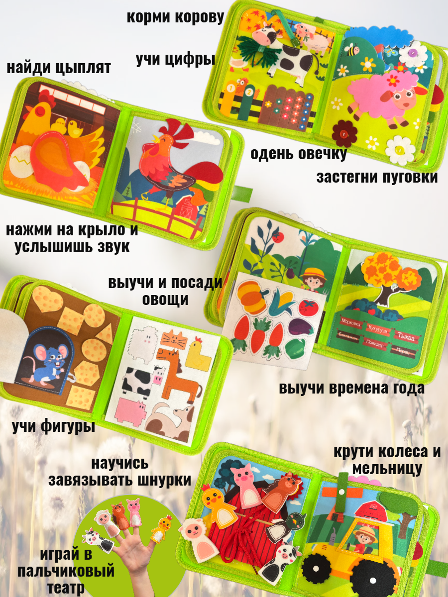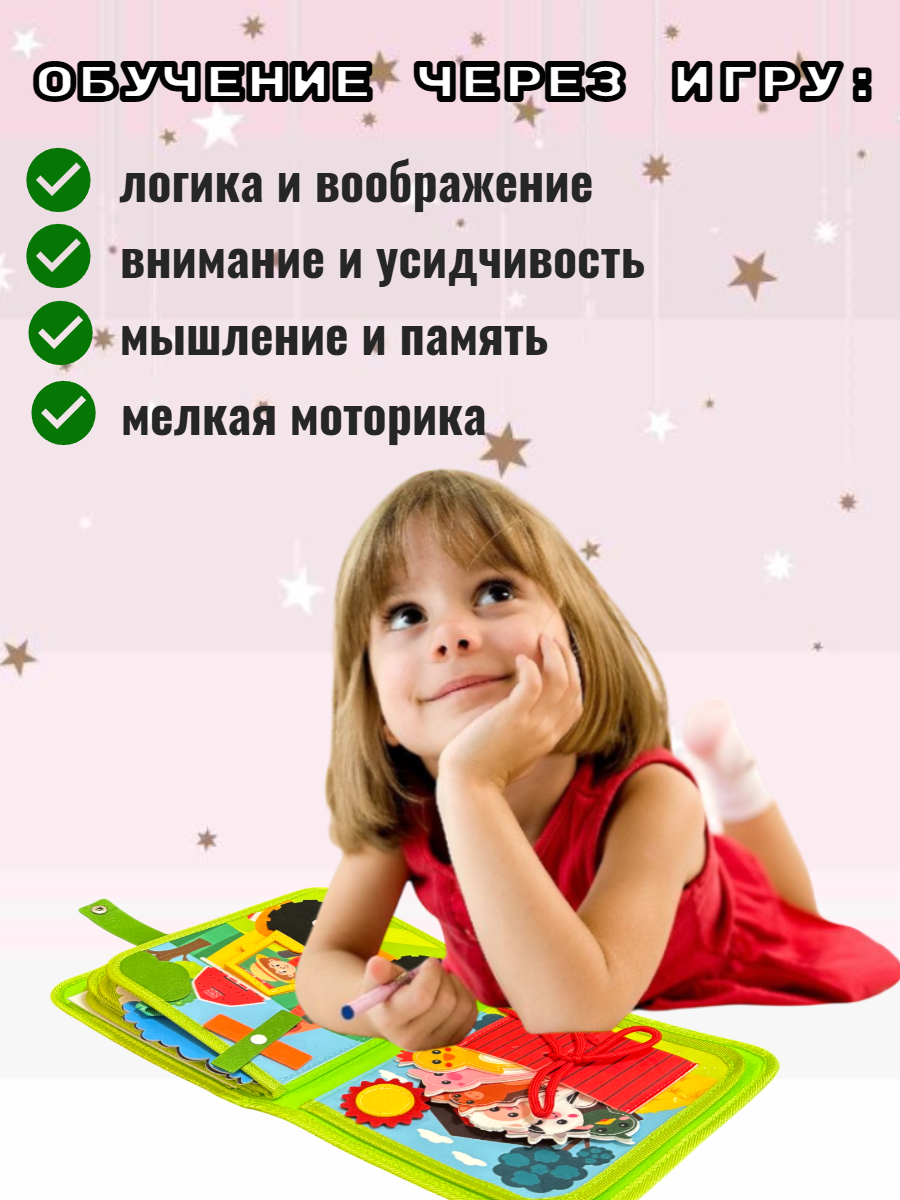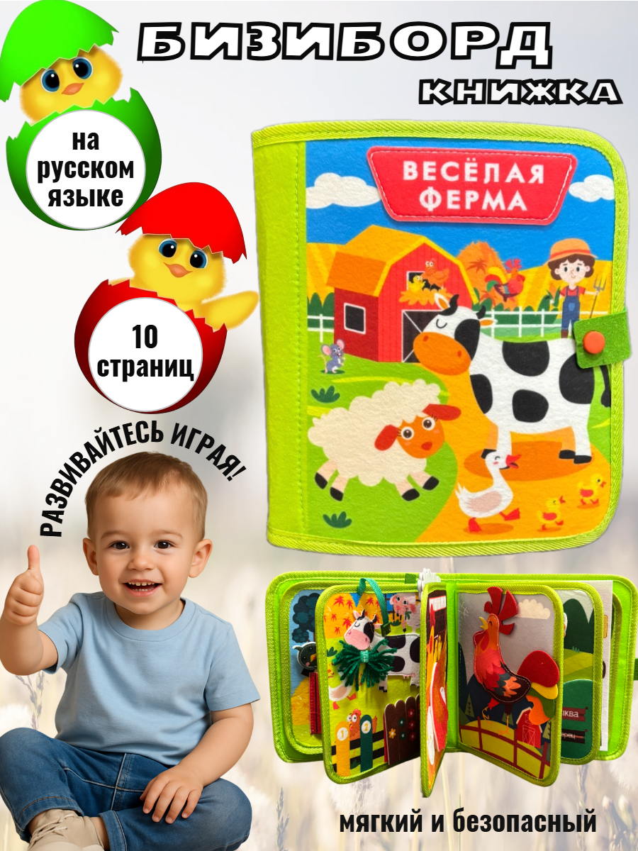 Мягкий бизиборд - развивающая игрушка для мальчиков и девочек, интересна как для малышей так и для деток постарше. Мини бизиборд - интересное занятие и обучающая игра. Книжка бизиборд для маленьких станет любимой игрушкой для вашего малыша. Мягкая дорожная игрушка заинтересует дошкольника познавательными и увлекательными элементами. Элементы держатся с помощью кнопок, застежек, липучек. Играя в бизиборд-чемоданчик малыш тренирует логику, внимание, усидчивость. Прокачивает с помощью развивашки мышление, воображение, логику. Легкий бизиборд развивашка тренирует координацию движений и мелкую моторику. Обучающий бизиборд улучшает память, расширяет кругозор. Ускоряется формирование речи. Изучайте алфавит. Развивайте мелкую моторику рук. Узнавайте цифры. Собирайте пазл-головоломку. Запоминайте цвета. Знакомьтесь с формами и фигурами. Развивайка для детей выполнена из безопасных гипоаллергенных материалов - мягкой тактильно приятной ткани текстиля – фетра. Бизиборт поможет приобрести целый набор важных навыков: открывать и закрывать ремень на брюках, застегивать молнию на куртке и кофте, застегивать кнопки, прилеплять липучки и завязывать шнурки. Настольные игры для детей подойдут как для индивидуальной игры, так и для совместного досуга с друзьями в садике или с родителями дома, на отдыхе, даче, в гостях. Дорожный бизиборд удобно взять с собой в путешествие на машине, самолете или поезде. Можно играть в коляске. Универсальные и безопасные детские развивалки используют для семейных игр, игр в дорогу, на море. Набор станет долгожданным подарком для ребенка до года и от 1 года, 2+, 3+, 4+ и 5 лет на день рождения. Логические игры с разнообразными замочками станут интересным подарком в садик для внучки и внука. Мягкий бизиборд подойдет в качестве креативного подарка мальчику и подарка девочке. Умные игры развивашки для малышей — интересный подарочный набор для племянницы, племянника. Прикольный подарок крестнику, крестнице на Новый год, Рождество или любой другой праздник.