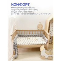 Бортики в кроватку для новорожденного "Косичка" от бренда CINLANKIDS длиной 250 см созданы, чтобы обеспечить максимальный комфорт и безопасность для вашего малыша. Этот мягкий и уютный бортик, выполненный из высококачественного полиэстера, спандекса и полипропиленового хлопка, станет идеальным дополнением к кроватке вашего ребенка. Бортик косичка подходит как для круглой, так и для овальной кроватки, создавая защитный барьер по всему периметру. Благодаря своей длине в 250 см, коса в колыбель надежно оберегает малыша от ударов о бортики кроватки, создавая уютное и безопасное пространство для сна. Бортик для новорожденного не имеет застежек и декоративных элементов, что делает его еще более безопасным для малышей. Борт легко надевается и снимается, а его мягкий наполнитель из полипропиленового хлопка обеспечивает комфорт и тепло. Бортик в люльку станет прекрасным дополнением к любой детской комнате, создавая уютную и безопасную атмосферу для вашего малыша. Отлично подойдут на любой размер кровати, в том числе как подушка и как бортики на кроватку 120*60. Бортики в кроватку для новорожденных сделают сон малыша комфортнее и безопаснее. Бортики в кроватку для новорожденных универсальны и подходят как для мальчика, так и для девочки, благодаря своей нейтральной палитре. Соберите свой комплект в кроватку для новорожденного с товарами от CINLANKIDS!