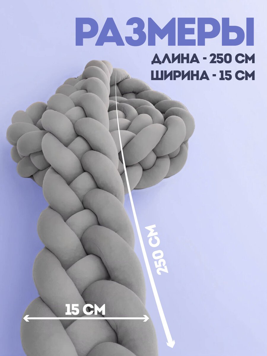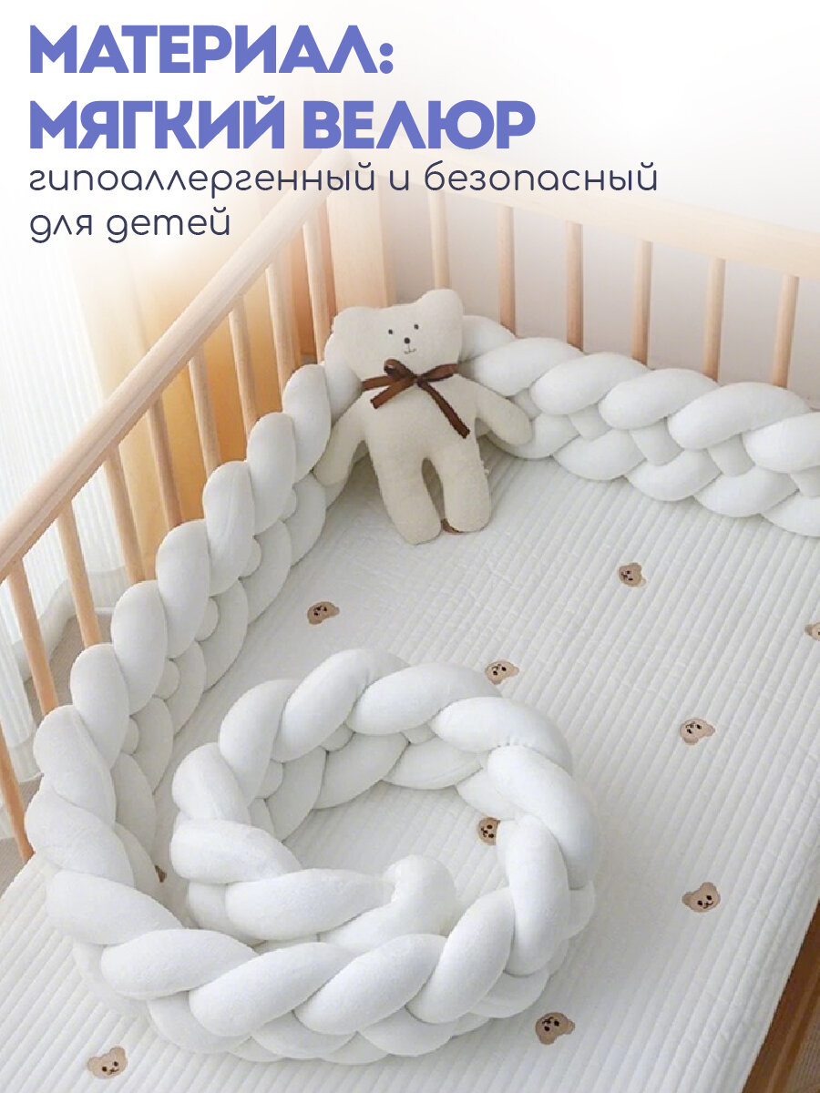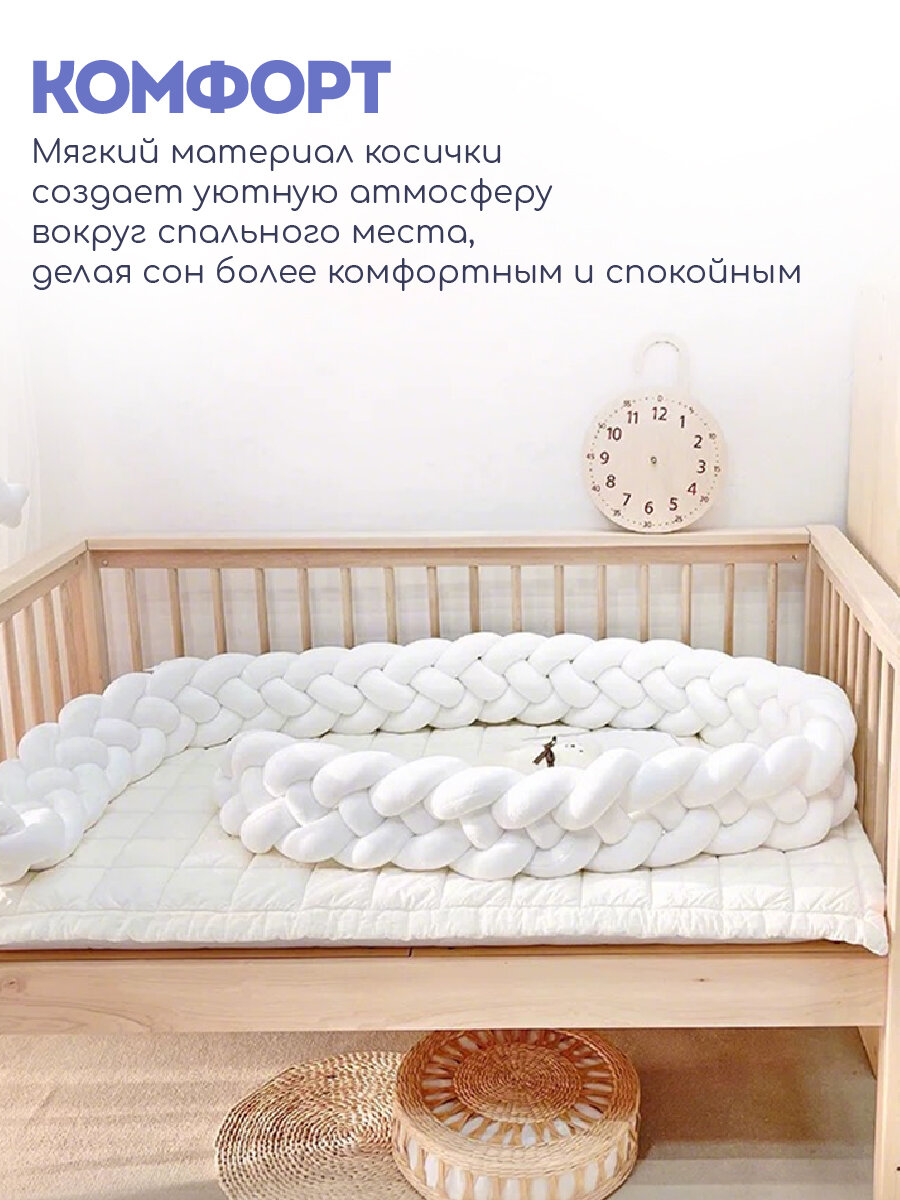Бортики в кроватку для новорожденного "Косичка" от бренда CINLANKIDS длиной 250 см созданы, чтобы обеспечить максимальный комфорт и безопасность для вашего малыша. Этот мягкий и уютный бортик, выполненный из высококачественного полиэстера, спандекса и полипропиленового хлопка, станет идеальным дополнением к кроватке вашего ребенка. Бортик косичка подходит как для круглой, так и для овальной кроватки, создавая защитный барьер по всему периметру. Благодаря своей длине в 250 см, коса в колыбель надежно оберегает малыша от ударов о бортики кроватки, создавая уютное и безопасное пространство для сна. Бортик для новорожденного не имеет застежек и декоративных элементов, что делает его еще более безопасным для малышей. Борт легко надевается и снимается, а его мягкий наполнитель из полипропиленового хлопка обеспечивает комфорт и тепло. Бортик в люльку станет прекрасным дополнением к любой детской комнате, создавая уютную и безопасную атмосферу для вашего малыша. Отлично подойдут на любой размер кровати, в том числе как подушка и как бортики на кроватку 120*60. Бортики в кроватку для новорожденных сделают сон малыша комфортнее и безопаснее. Бортики в кроватку для новорожденных универсальны и подходят как для мальчика, так и для девочки, благодаря своей нейтральной палитре. Соберите свой комплект в кроватку для новорожденного с товарами от CINLANKIDS!