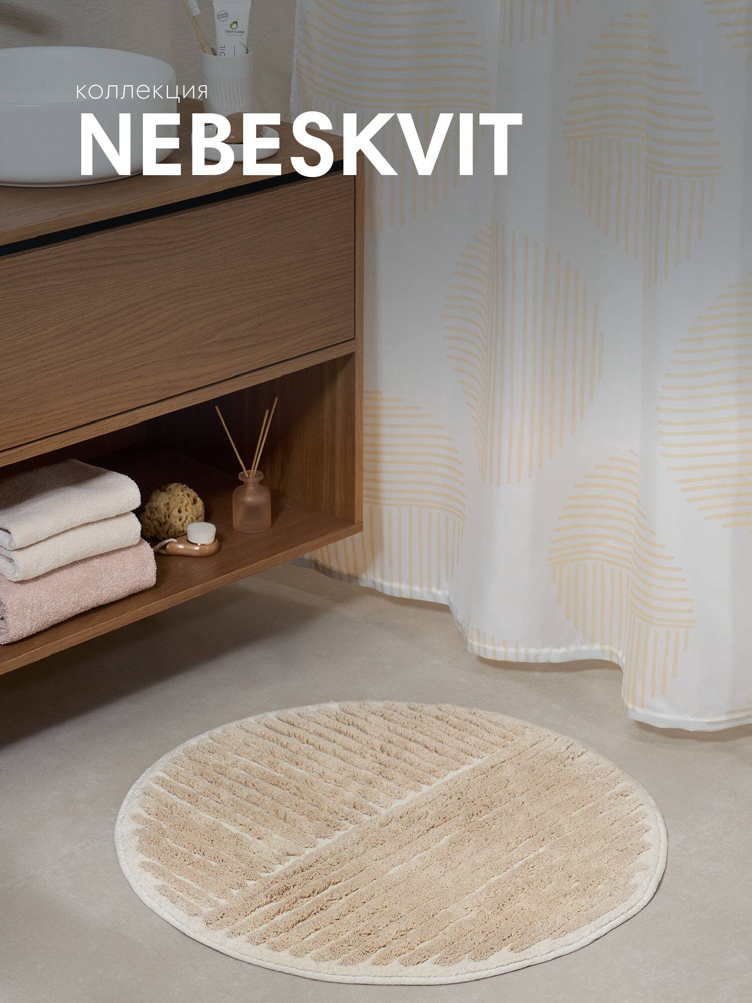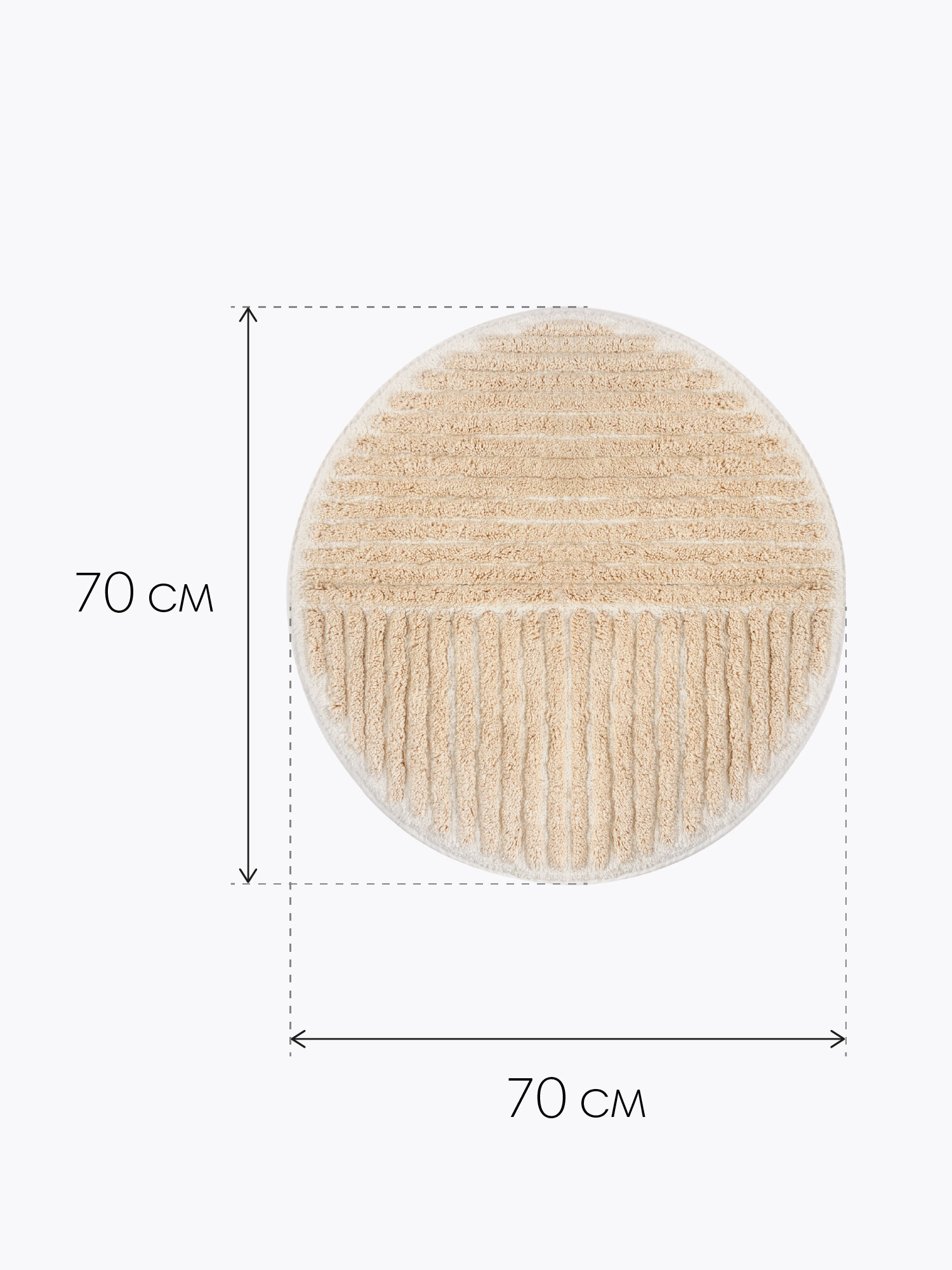 Мягкий круглый коврик для ванной комнаты Nebeskvit из хлопка молочного и бежевого цвета. Диаметр коврика: 70 см. Латексное покрытие не позволяет коврику скользить по полу, что обеспечивает безопасность его использования. Коврик подходит для системы «теплый пол». Форма ковра круглая. Аккуратная прострочка по краям позволяет аксессуару держать форму и не изнашиваться.