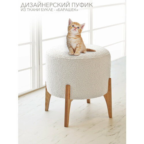 Купить Мягкий круглый пуфик из букле барашек для прихожей, спальни к туалетному столику, гостинной с доставкой по всей России.