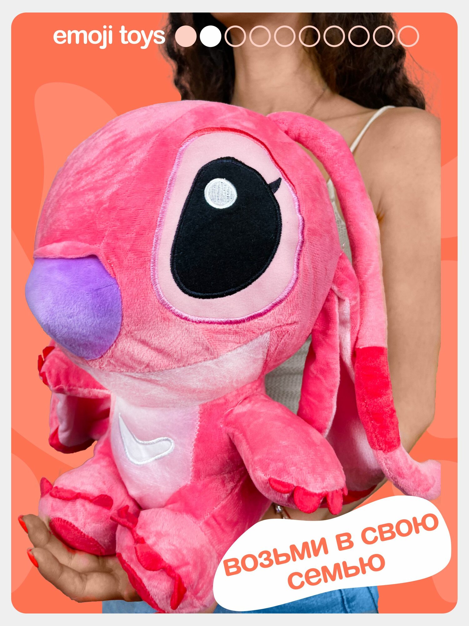 Мягкий плюшевый розовый стич Эйнджел 50 см. Милая игрушка для девочек