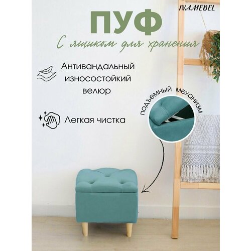 Пуфик Iva Mebel с ящиком для хранения вещей, ножки из натурального дерева-береза, покрытые лаком, наполнитель-не продавливаемый поролон. Наши пуфы созданы для современных интерьеров. Пуф размером: (ДхШхВ) 40х35х40. Ткань мягкий велюр, моющийся мылом, тактильно приятный на ощупь, мягкий велюровый лицевой слой с декоративными пуговицами. Пуфик для комнаты оснащен надёжным металлическим креплением - механизмом трансформации для открывания крышки и удержание её в открытом состоянии. Банкетка с вместительным ящиком. Куда бы вы не поставили пуфик с ящиком он отлично впишется. Пуфик в спальню или пуфик в зал станет отличным решением. Пуфик в коридор, пуфик для прихожей- такой предмет интерьера станет сердцем дома. Отличный подарок маме, подарок любимой, подарок подруге. Пуфик банкетка доставляется в плотной картонной коробке, мебель с деревянными опорами (ножки) внутри- нужно только прикрутить. Сделано в России. Такой предмет интерьера станет сердцем дома. Отличный подарок маме, папе, подарок любимой, подарок на новоселье, подарок на день рождение, подарок подруге, другу.