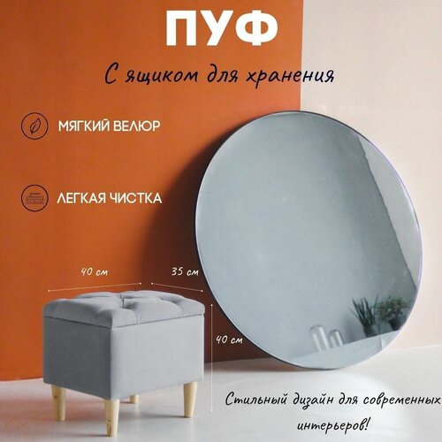 Пуфик Iva Mebel с ящиком для хранения вещей, ножки из натурального дерева-береза, покрытые лаком, наполнитель-не продавливаемый поролон. Наши пуфы созданы для современных интерьеров. Пуф размером: (ДхШхВ) 40х35х40. Ткань мягкий велюр, моющийся мылом, тактильно приятный на ощупь, мягкий велюровый лицевой слой с декоративными пуговицами. Пуфик для комнаты оснащен надёжным металлическим креплением - механизмом трансформации для открывания крышки и удержание её в открытом состоянии. Банкетка с вместительным ящиком. Куда бы вы не поставили пуфик с ящиком он отлично впишется. Пуфик в спальню или пуфик в зал станет отличным решением. Пуфик в коридор, пуфик для прихожей- такой предмет интерьера станет сердцем дома. Отличный подарок маме, подарок любимой, подарок подруге. Пуфик банкетка доставляется в плотной картонной коробке, мебель с деревянными опорами (ножки) внутри- нужно только прикрутить. Сделано в России. Такой предмет интерьера станет сердцем дома. Отличный подарок маме, папе, подарок любимой, подарок на новоселье, подарок на день рождение, подарок подруге, другу.