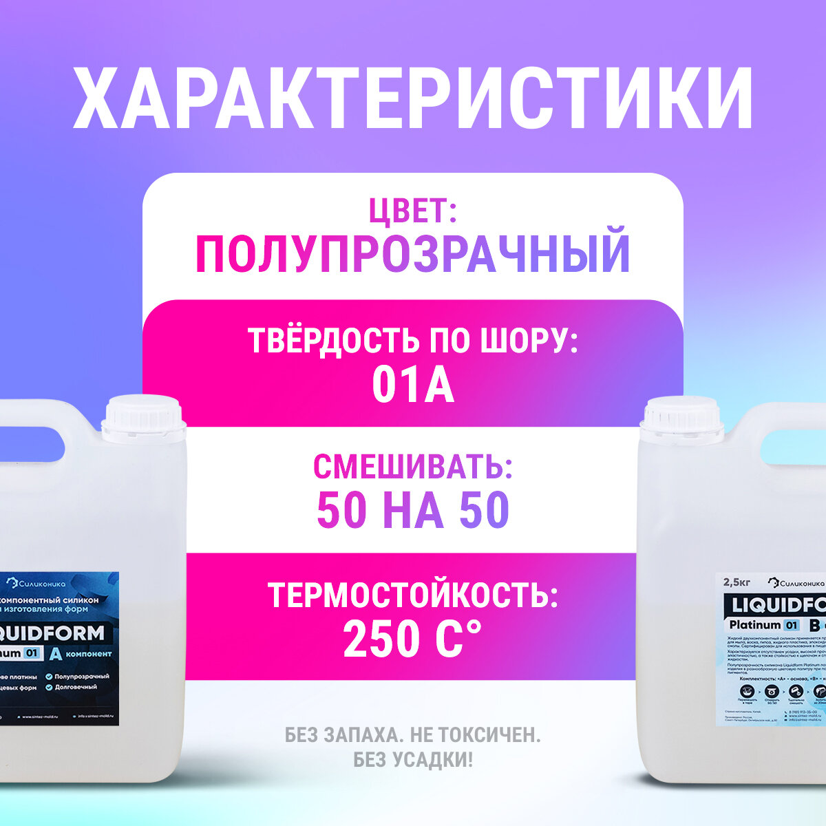 НЕ токсичен! Не имеет запаха и обладает исключительной текучестью. Формовочный силикон Liquidform Platinum предельно прост в использовании, легко смешивается и точно воспроизводит все детали рельефа мастер-модели. Силиконы на платиновом катализаторе характеризуются отсутствием усадки и длительным сроком службы готовых форм.