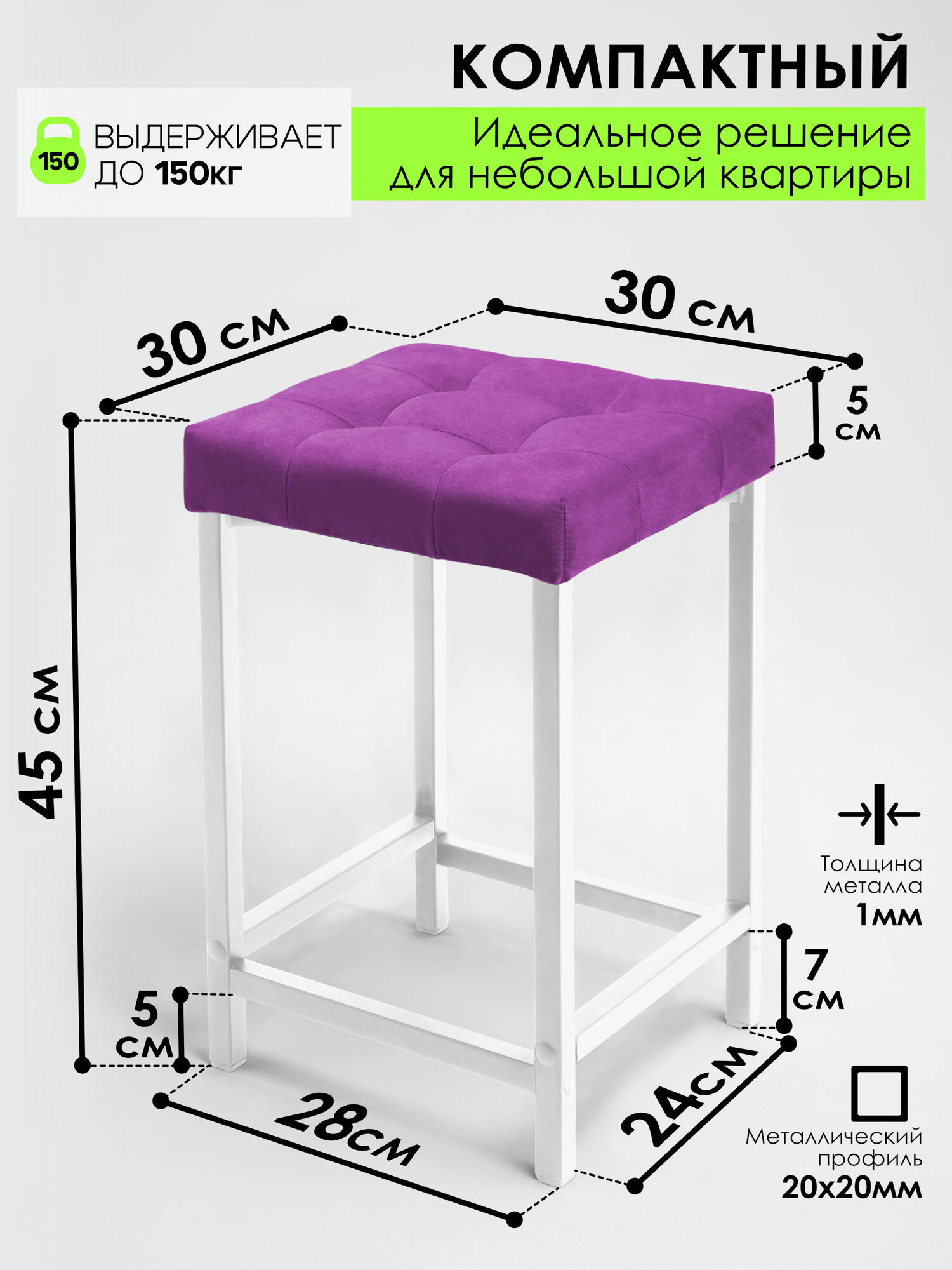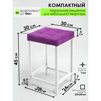 Практичный и лаконичный табурет идеально впишется в интерьер кухни или столовой. Мягкая табуретка 1шт в стиле лофт обеспечивает комфорт и подходят для гостиной, коридора или спальни. Требуется сборка, легко собирается, всё необходимое в комплекте. Максимальная нагрузка одной табуретки 120 кг. Устойчивая металлическая конструкция сделана из профиля 20х20. Металлокаркас окрашен порошковой краской с текстурой муар. Стальные ножки оснащены подпятниками и защитят напольное покрытие от повреждений. Упругое сиденье выполнено из микровелюра Velluto и ППУ наполнителя. Квадратную табуретку комфортно поставить в прихожей, использовать на лоджии или балконе. Эргономичная высота удобна для стандартного кухонного стола в обеденной зоне. Отличный подарок на новоселье, годовщину свадьбы или другой праздник друзьям или родственникам. В нашем каталоге вы можете найти пуфы, наборы других стульев и мебель в комплект.